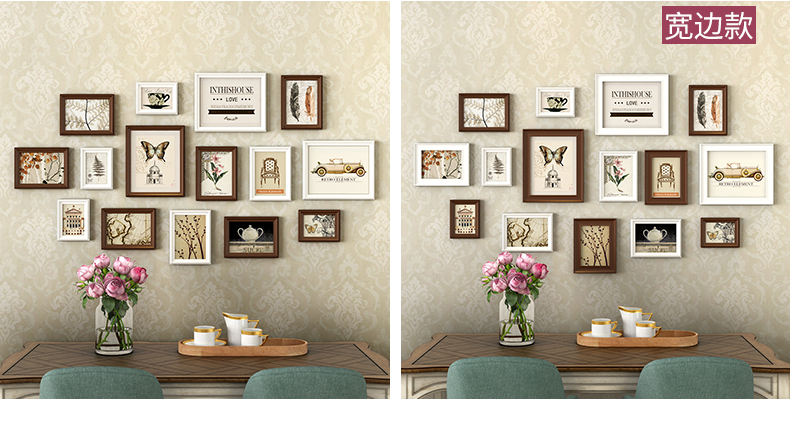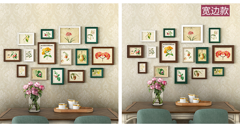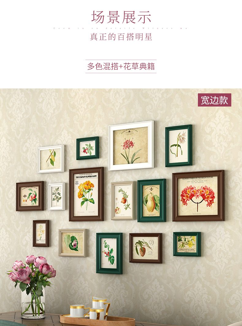 | 商品名称 | 紀恒軟写真壁フォトフレームの組み合わせ簡単な現代レストランの木欧式掛壁リビング廊下のアイデア装飾フレームアメリカ式復古小像フレームの写真フレームの木のアルバムの多色混合+草花の典籍(ワイドタイプ) |