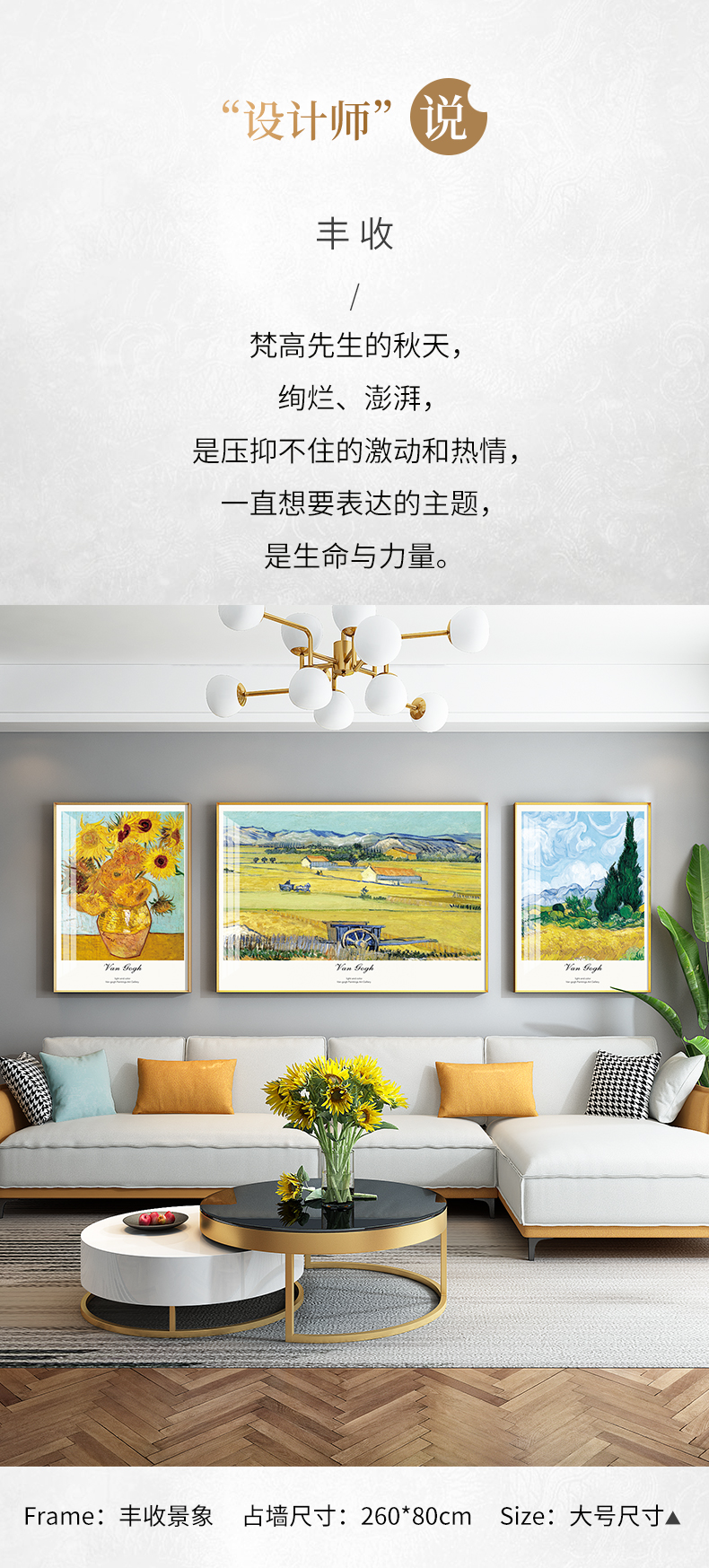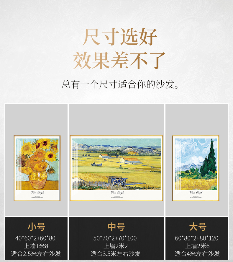 紀恒軟らかいゴッホの装飾画世界の名画家の居間のソファーの壁に、軽くて豪華な磁器画の高級な大気三連画の現代簡単な壁画の抽象芸術の壁画の豊作シリーズぐらい50*70+中70*100(3.5メートルぐらいのソファー)を掛けました。