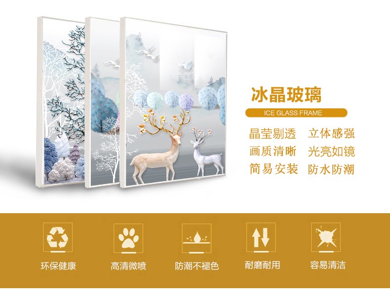 | 商品の名称 | 晴を飾って意味のソファーの背景の壁の装飾画の近代的な簡単な客間の3聯を飾って北欧のトナカイの寝室の壁画の玄関のレストランの氷晶画の福禄双全の01*60 cm/氷晶画をかきます。 |