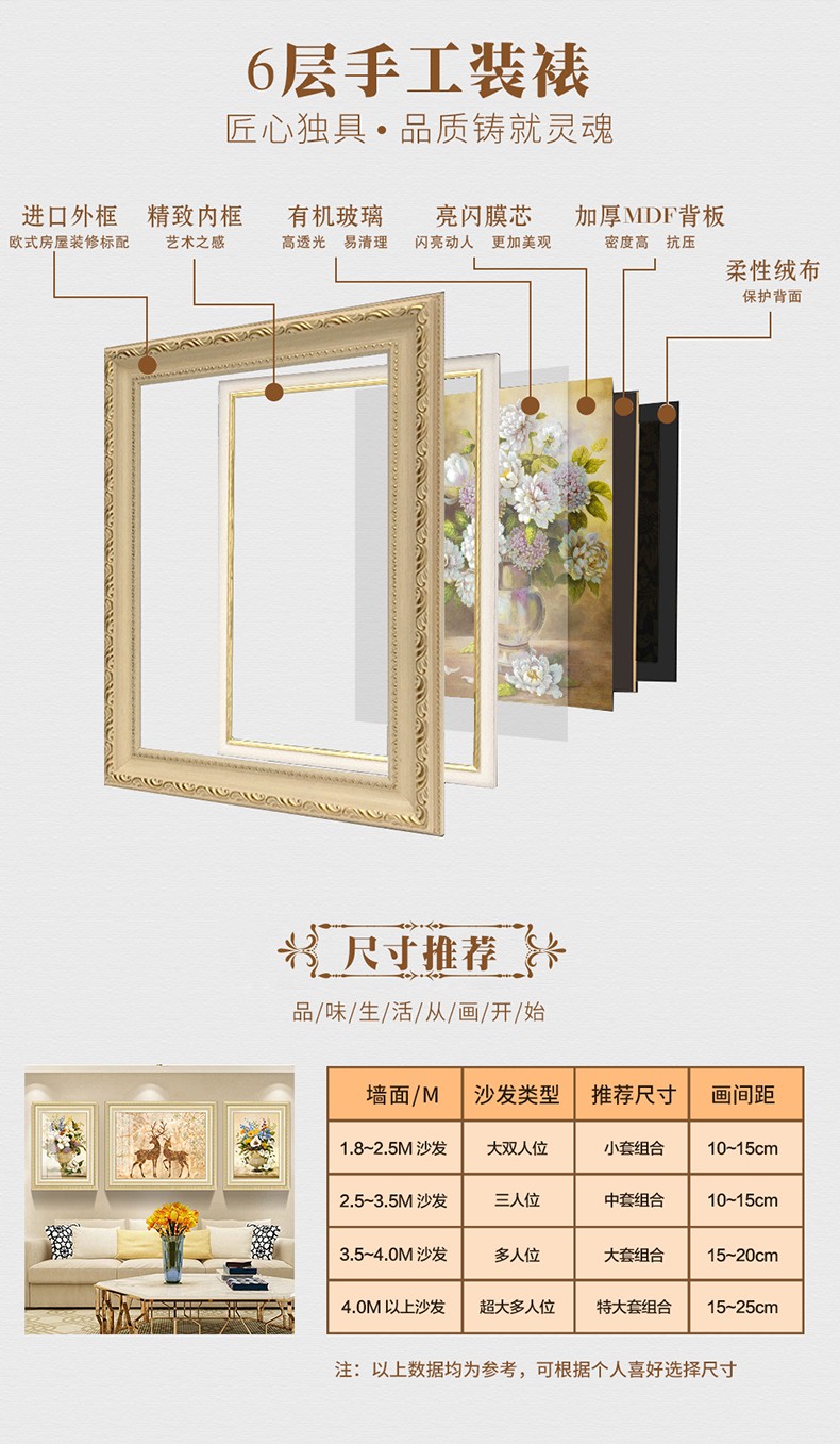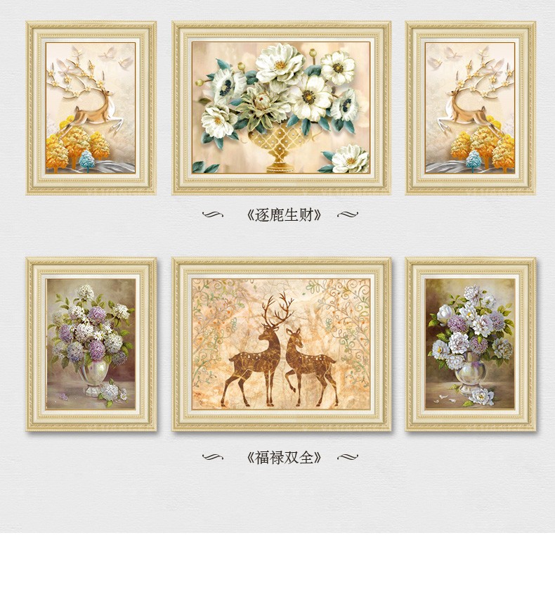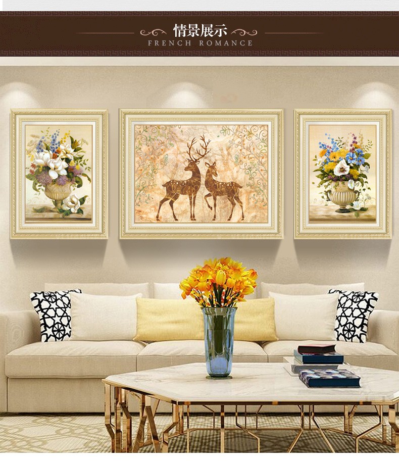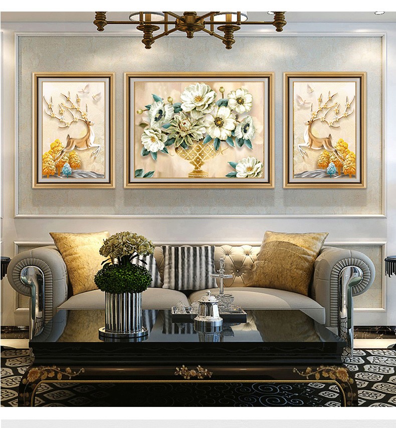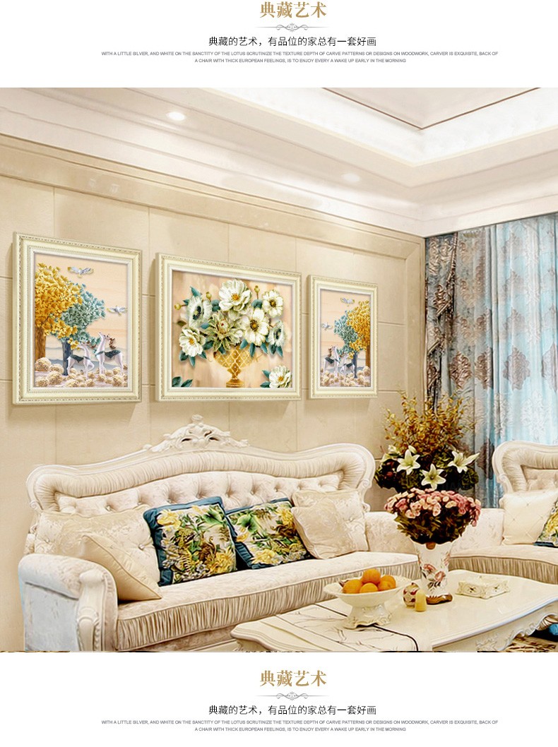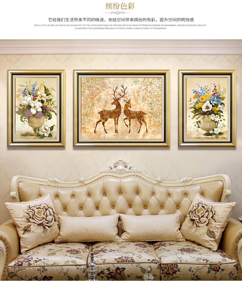 | 商品名称 | 晴画意欧式客間装飾画北欧軽奢ソファ背景画寝室暖かい三連壁画レストランの背景壁掛画福禄平安【おすすめ】のセット(50*70中央100*70) |