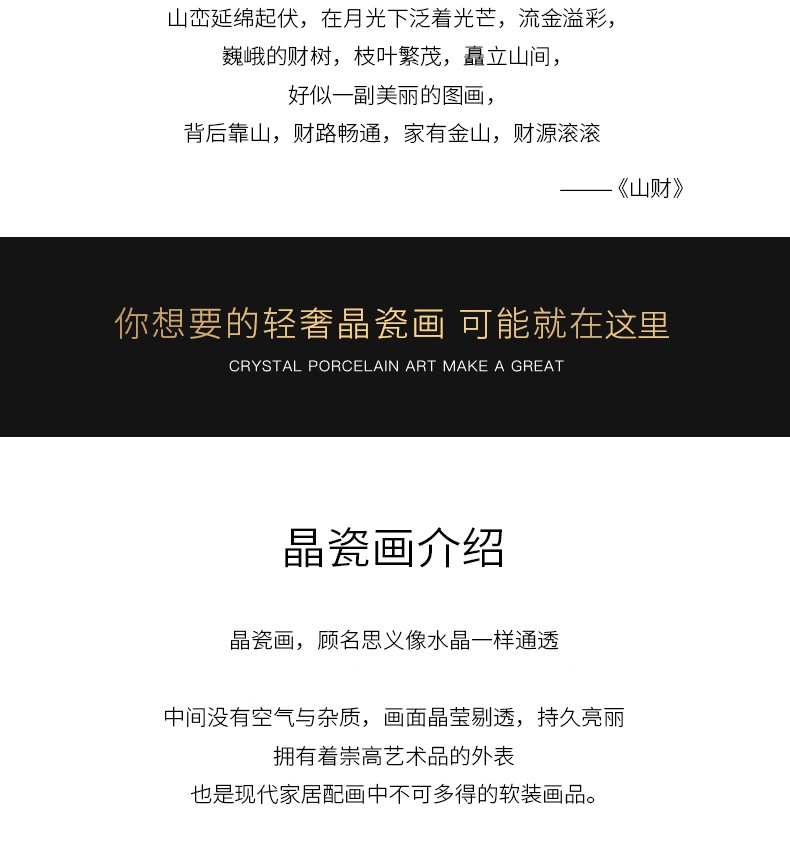 | 商品名称 | 晴を飾って画意の玄関を飾って立て版の廊下の壁画の北欧の晶磁画の近代的な簡単な招財の玄関を飾って金鹿の高い上昇の80*160 cmをかきます(水晶の磁器の鏡の面+アルミニウムの合金の枠) |