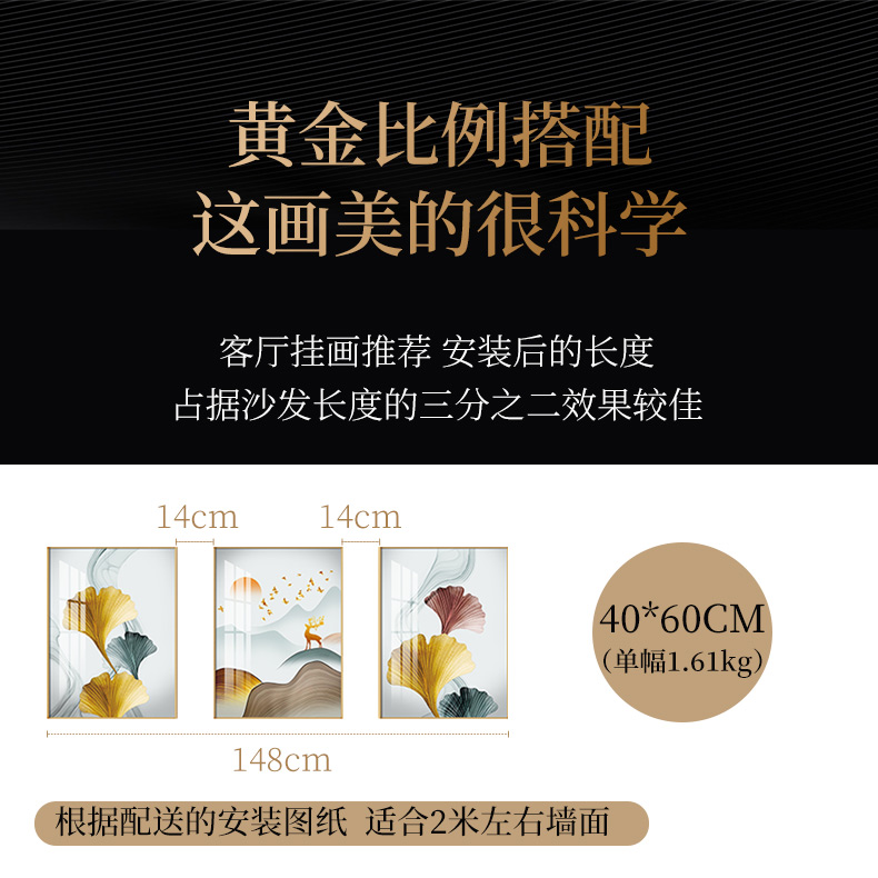 | 商品名称 | 紀恒軟らかい新中国式客間ソファの壁面装飾画高級な軽奢なテレビ壁の上の掛け絵招财福鹿の描いた北欧風レストランレストランレストランの大通りの壁画B 44-A-杏福安康-黒い枠の60*80 cm(3.5メートルぐらいのソファーに適しています) |