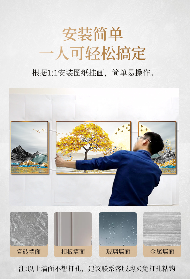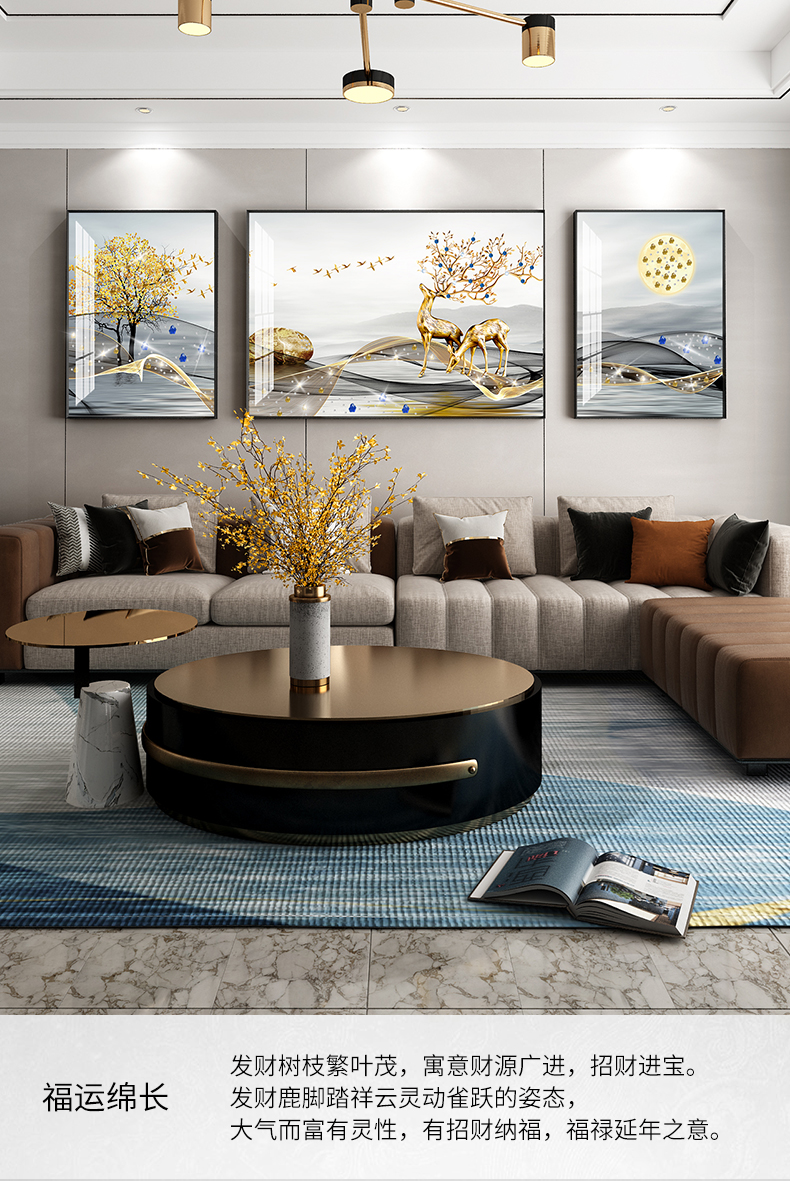 紀恒軟らかい客間の背景壁の装飾画は現代ソファの後ろの壁に掛けられています。軽くて贅沢な高級なダイヤモンドを描いて、磁器の絵を描いて、壁画の三連を動かします。中国式のフリーホールの壁を描いて、福を運びます。黒い枠(晶磁の手作業用のドリル)は50*70+中70*100ぐらいです。(3.5メートルぐらいのソファー)