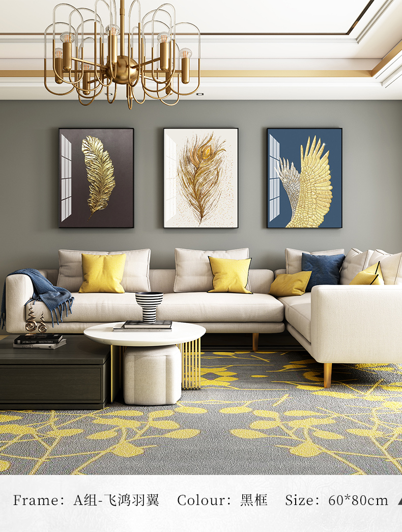 紀恒ふわふわリビングのソファーの背景壁の装飾画現代簡単な金色の羽画の抽象的な白黒の風の家庭の壁画芸術の晶磁画の別荘の豪華な壁壁の掛け絵A-飛鴻の羽-黒い枠の40*60 cm(2メートルぐらいのソファーに適しています)