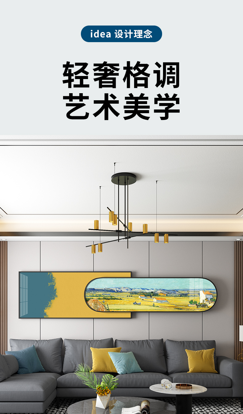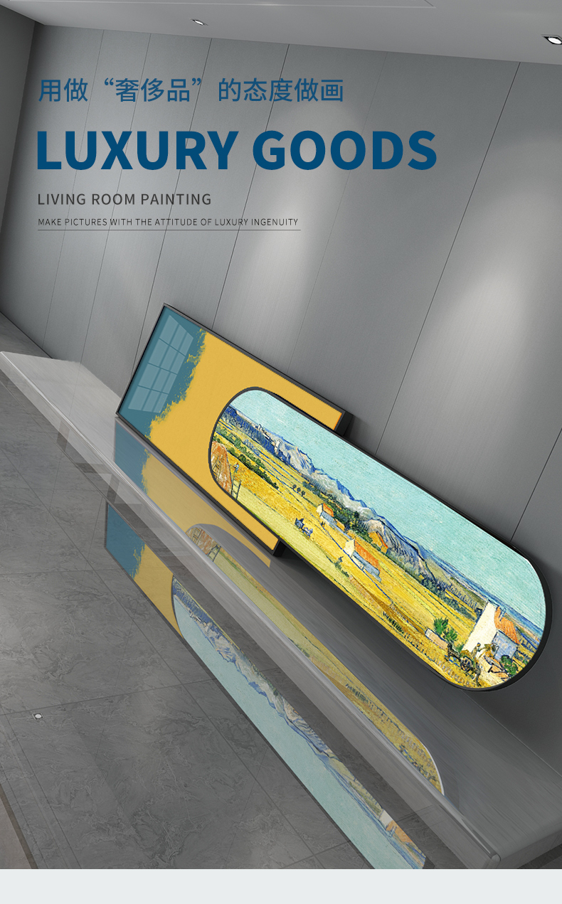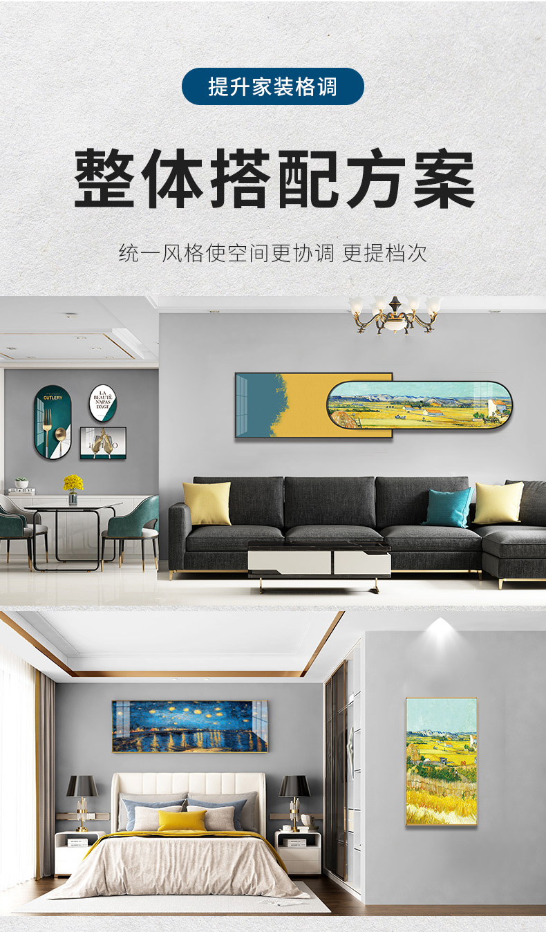 紀恒ふわふわ世界名画のゴッホ風景装飾画リビングのソファーの壁掛画を重ね合わせて創意的な円角水晶焼きの壁画家の暖かいロマンチックな雰囲気が漂う豪華な大気壁画C-麦田-黒いアルミニウム合金のフレーム210*50 cm(2.5-4.5メートルぐらいのソファーに適しています)