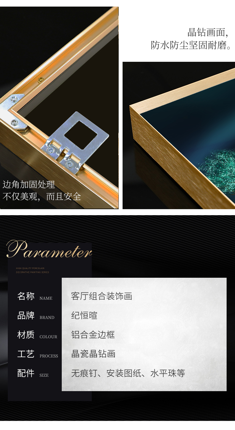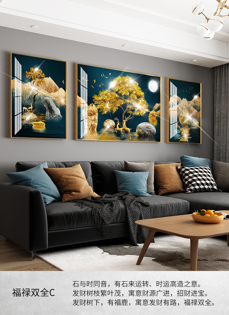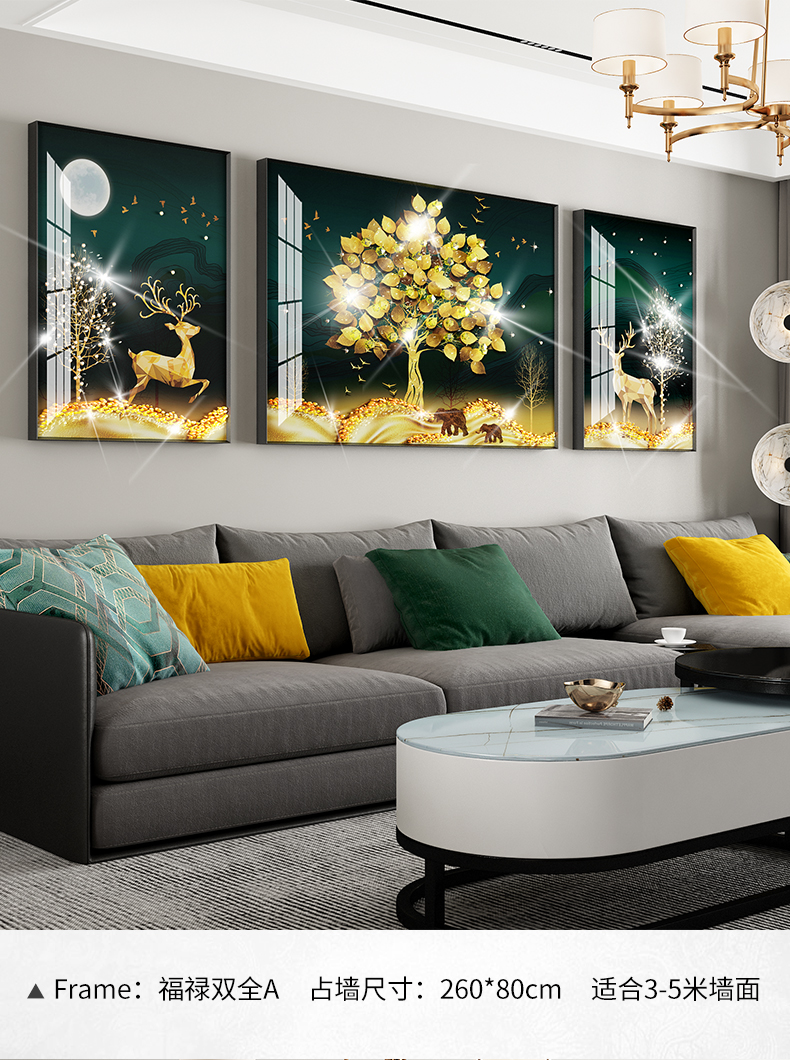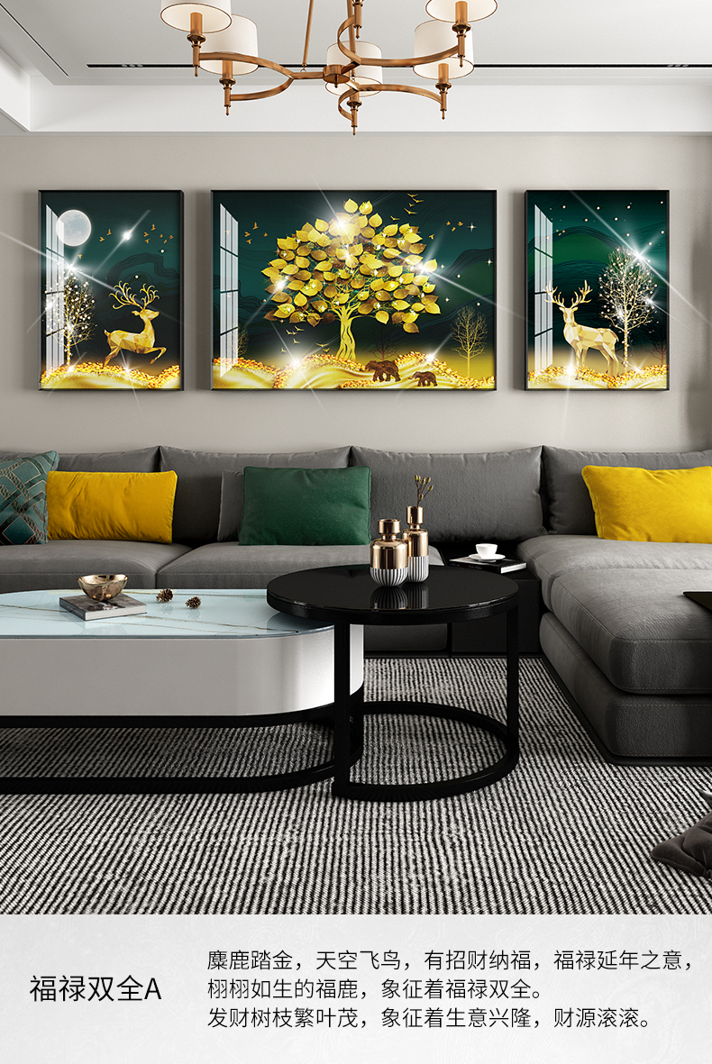 | 商品名称 | 紀恒軟らかソファーの背景壁に掛けられています。客間の装飾画を描いています。高級な大気晶磁器の押し入れドリル三連画。現代の簡単な寓意である、軽奢な壁絵が発達した北欧風の穴あけ免除の壁画福禄双全A-黒い枠(晶磁器の手作業用の押し入れドリル)の左右40*60+中60*80(2.5ぐらいのソファーに適しています。 |