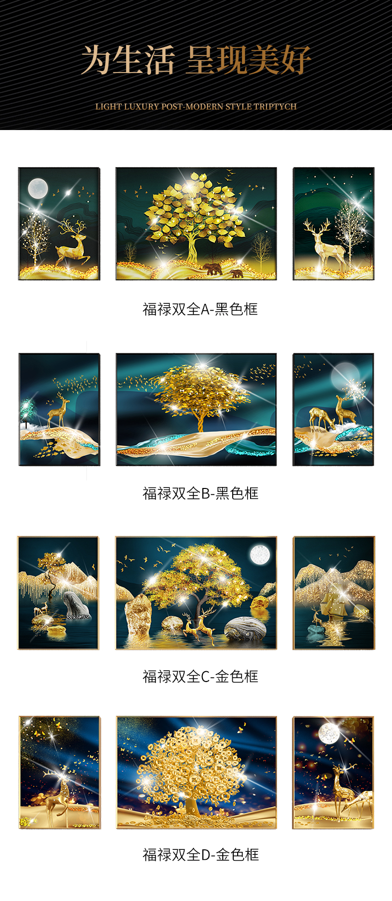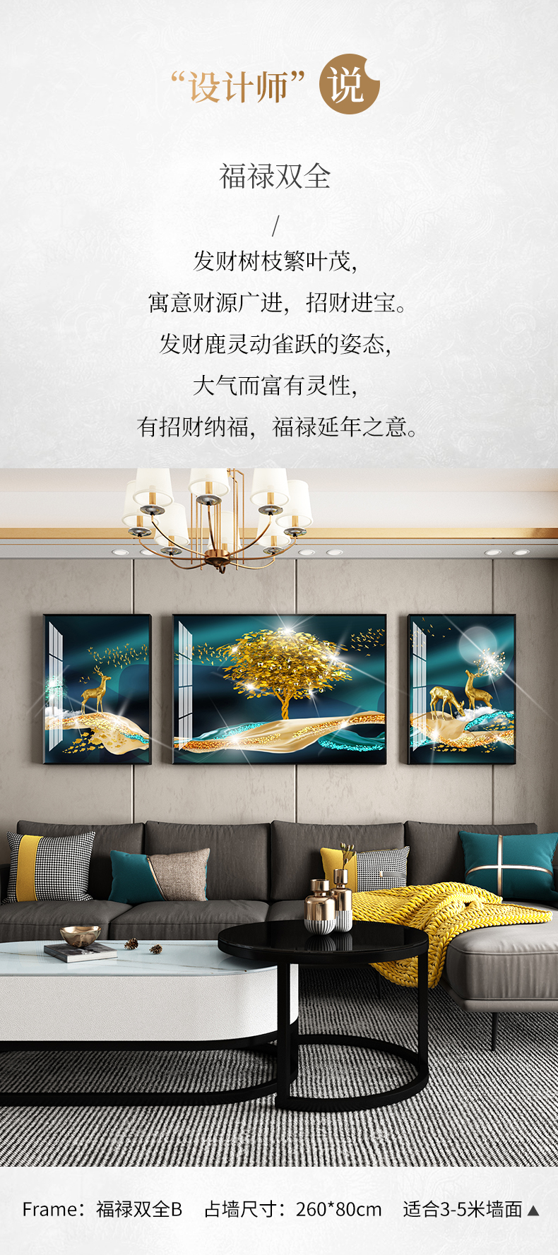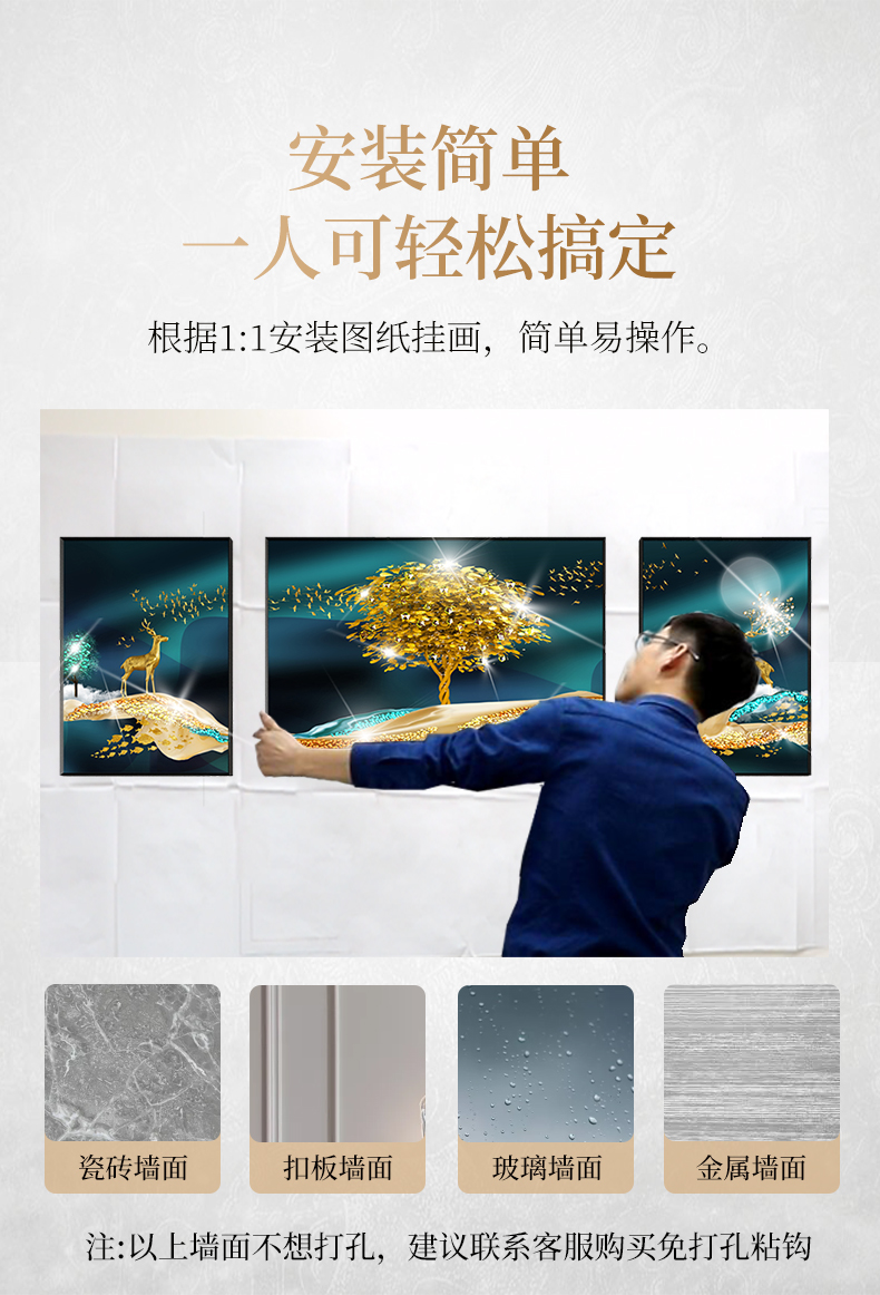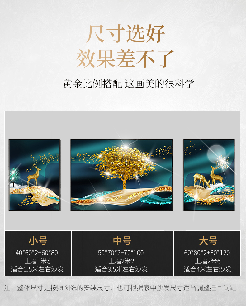 | 商品名称 | 紀恒軟らかソファーの背景壁に掛けられています。客間の装飾画を描いています。高級な大気晶磁器の押し入れドリル三連画。現代の簡単な寓意である、軽奢な壁絵が発達した北欧風の穴あけ免除の壁画福禄双全A-黒い枠(晶磁器の手作業用の押し入れドリル)の左右40*60+中60*80(2.5ぐらいのソファーに適しています。 |