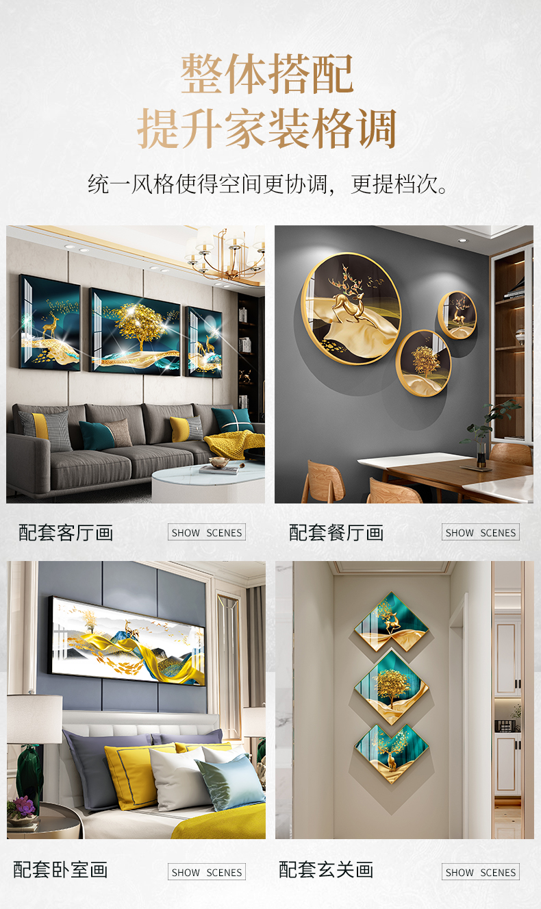 紀恒軟らかいソファーの背景壁に掛けられています。リビングの装飾画を描いた高級な大気晶磁器のパネルドリルを描いています。現代簡単に寓意されている軽豪華な壁画が発達しています。北欧の風が孔壁の絵を免除してくれます。