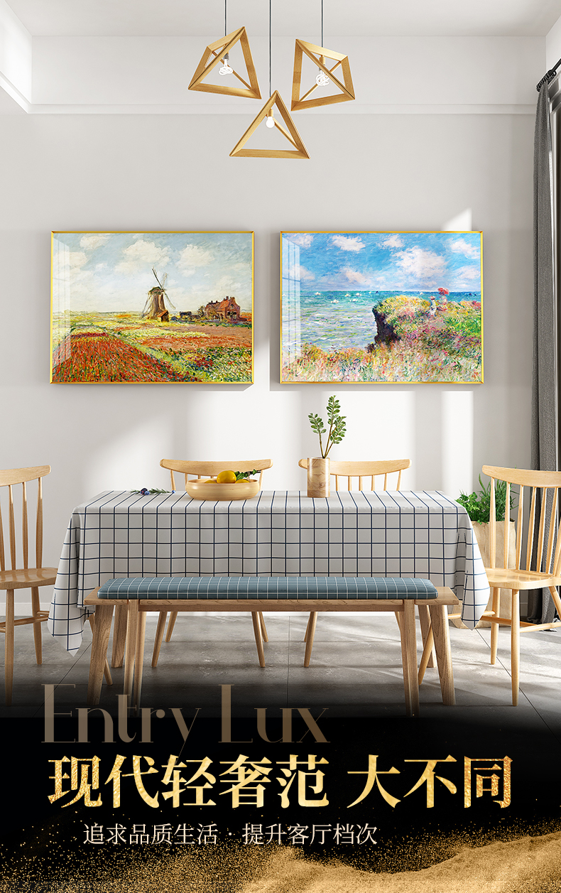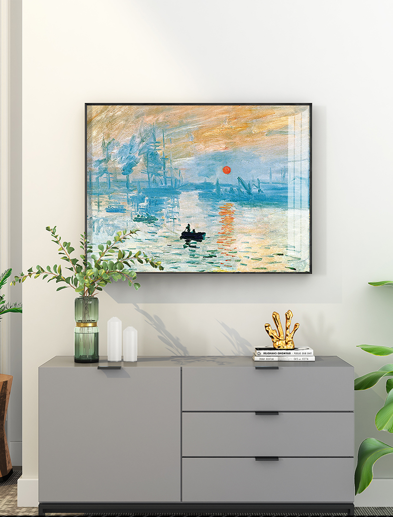 紀恒ふわふわレストランの装飾画の一幅の横柄な絵の世界の名画ゴッホの作品北欧現代晶磁画免除打孔壁画の軽い豪華な高級レストランのテーブルの上の壁画モネ-B日の出-金色の枠の高さ50*幅70 cm
