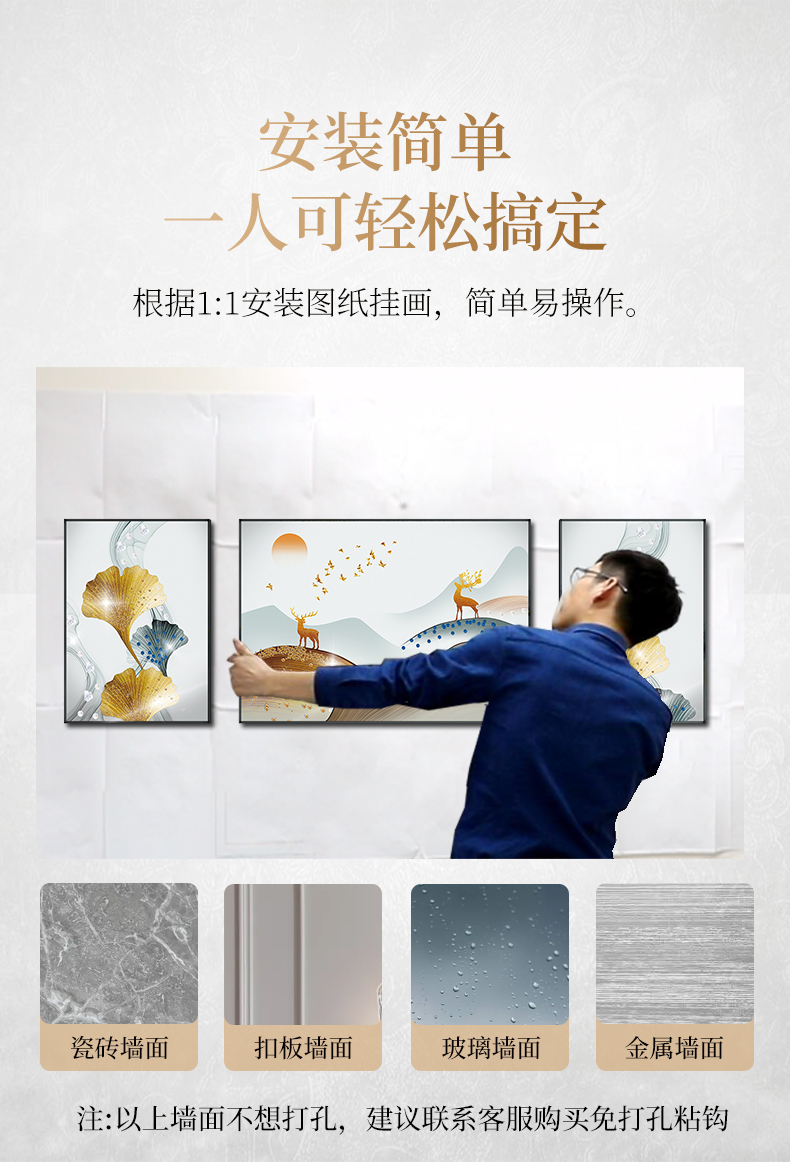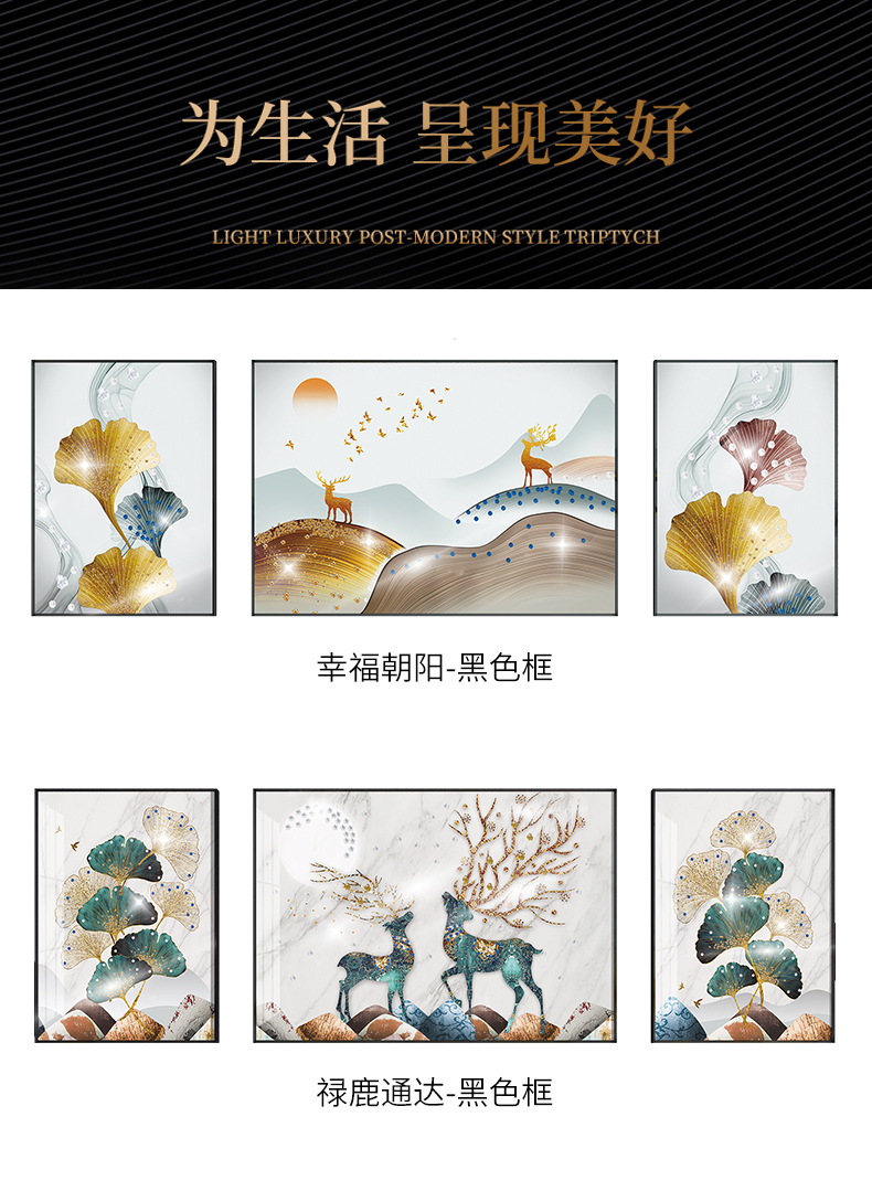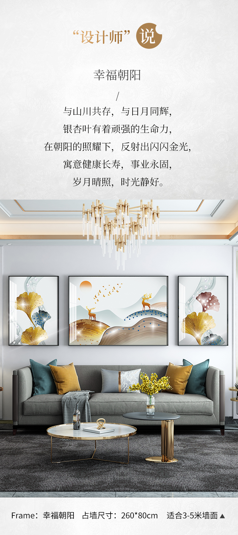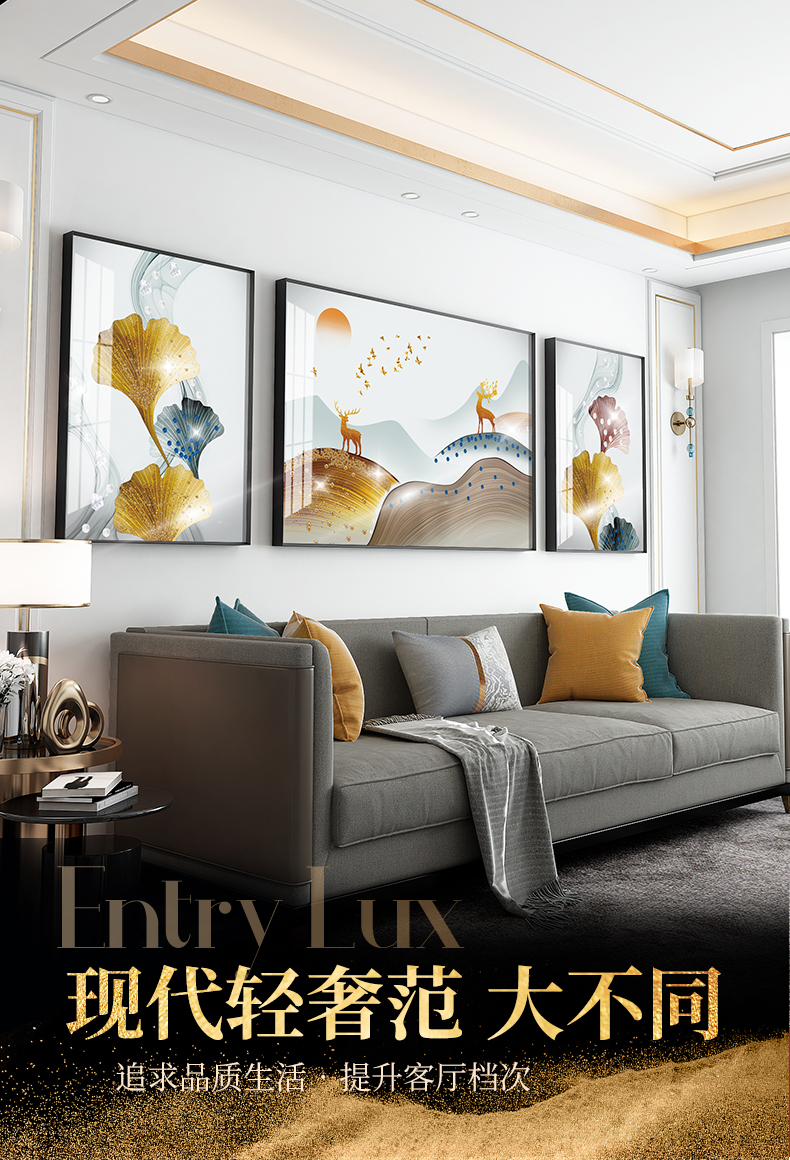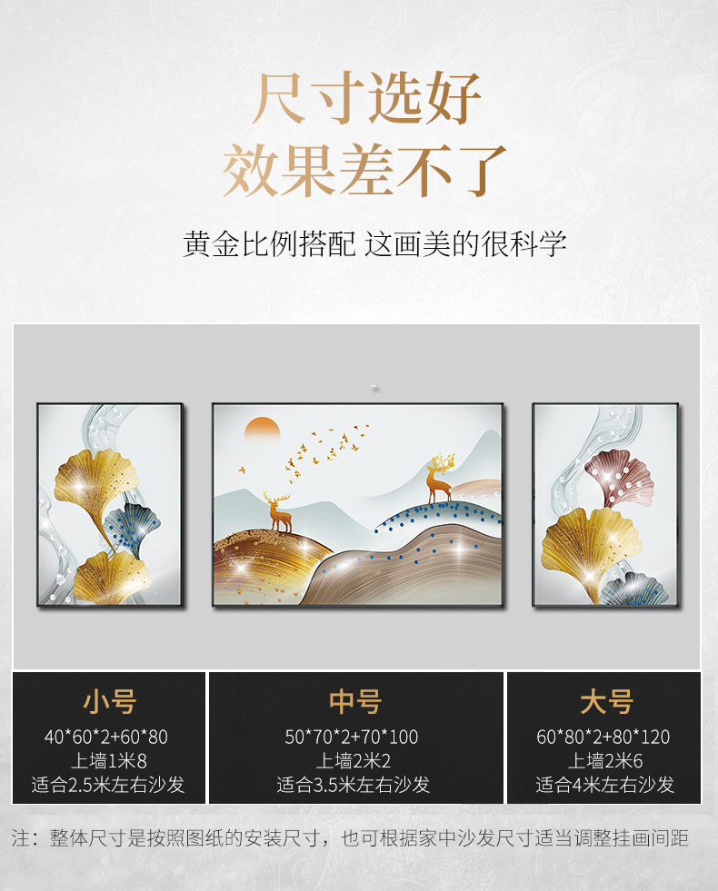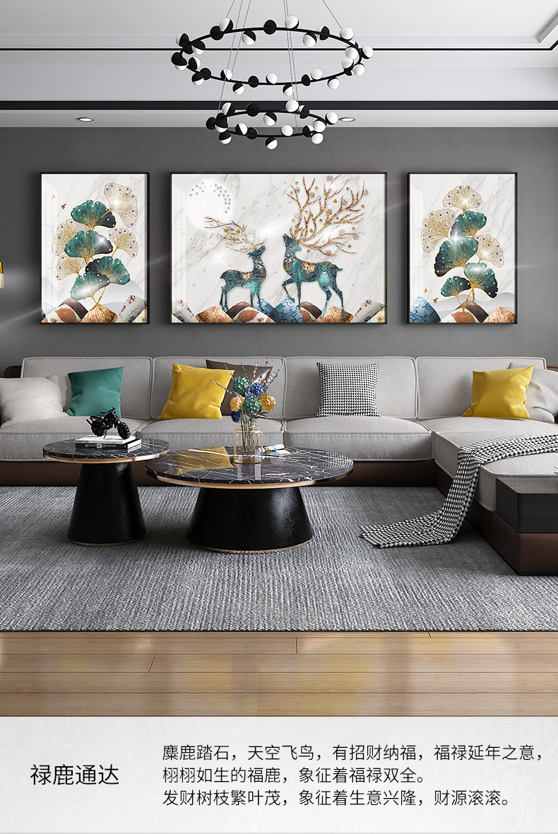 | 商品名称 | 紀恒ふんわりとした、モダンな大気リビング装飾画のソファの背景壁に銀杏の絵を描いています。鹿の壁画の結晶を描いた磁器のドリル三連は北欧風の暖かいテレビの後ろの壁の壁画を描いています。 |
