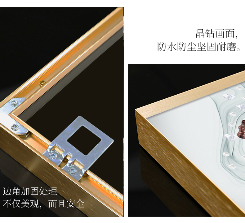 紀恒ふんわりとした贅沢な現代大気リビング装飾画のソファの背景壁に銀杏の絵を描いたムーブ壁画の水晶磁器のパネルドリル三連が北欧風の暖かいテレビの後ろの壁にある壁画の幸福な朝日-黒い枠(水晶磁器の手作業用のドリル)の左右40*60+中60*80(2.5ぐらいのソファーに適しています)