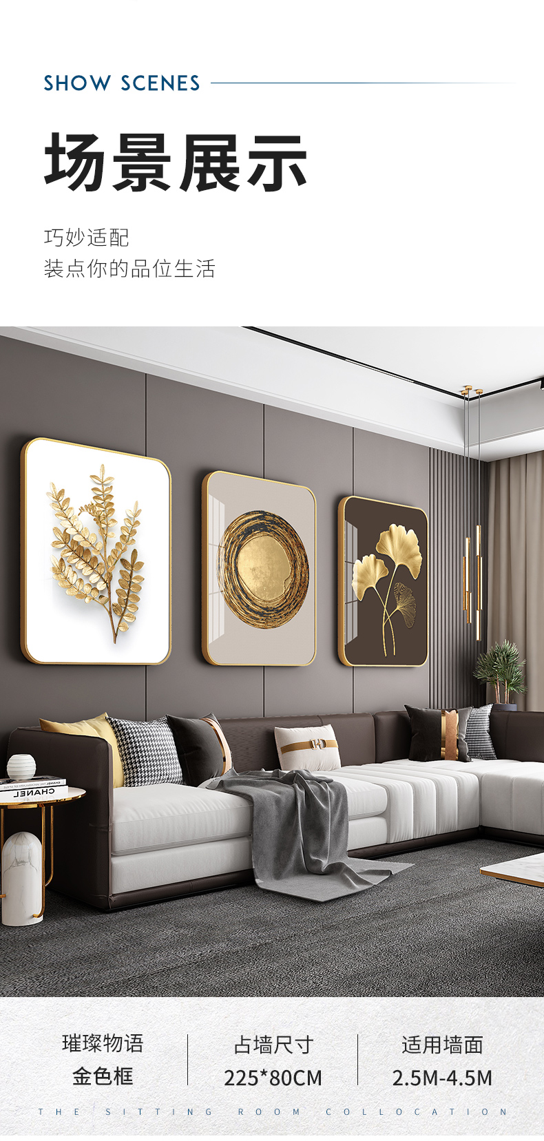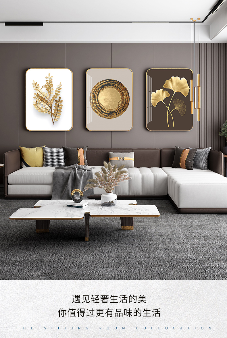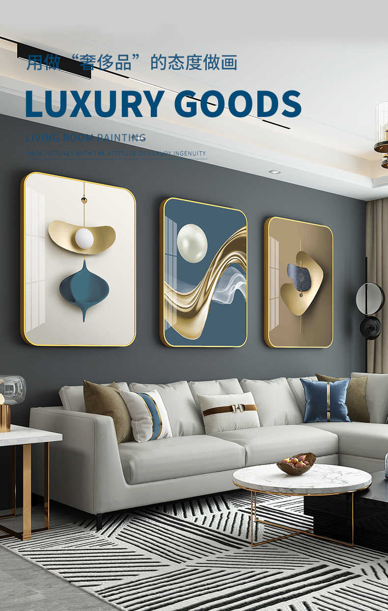 紀恒軟らかい客間装飾画モーランドディ色系ソファーの後ろの壁に掛けられた掛け絵現代簡約風創意円角家庭壁画の軽豪華な大気晶磁画北欧芸術壁画の時間秩序-金色アルミニウム合金フレーム40*60 cm(2メートルぐらいのソファーに適している)