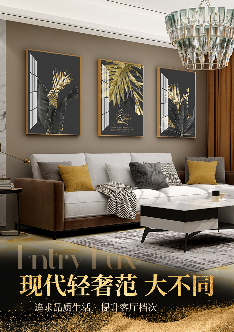 | 商品名称 | 紀恒軟抽象芸術客間の背景壁装飾画現代簡約ソファーの後ろの掛画晶磁画三連絵免除打孔北欧創意軟装壁画大気壁画C-しかも風吟-金色枠60*80 cm(3.5メートルぐらいのソファーに適しています) |