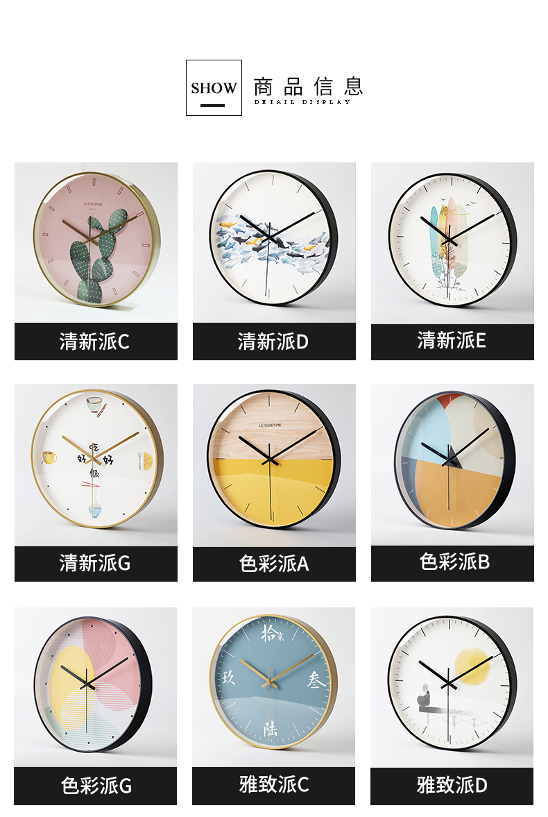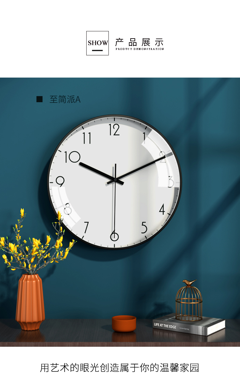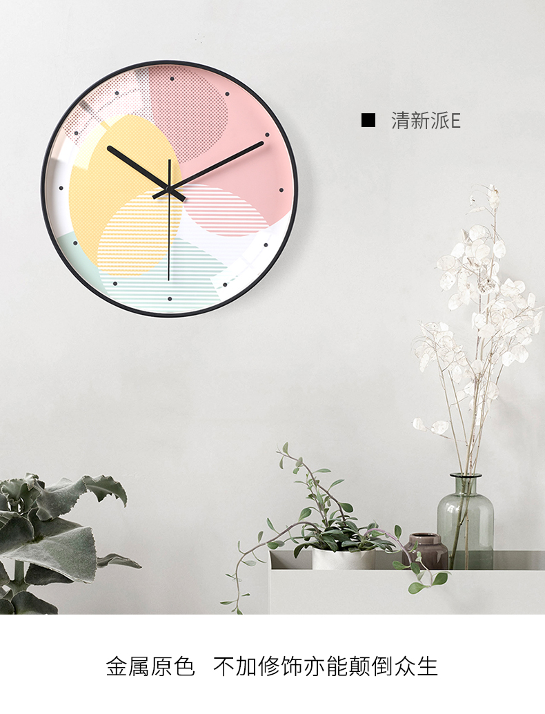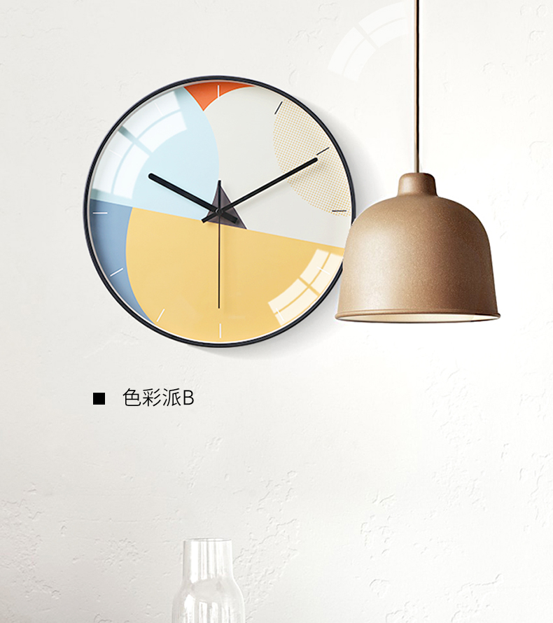 紀恒軟現代簡約北欧掛鐘居間の個性家庭用静音時計創意石英時計壁時計壁鐘芸術デジタルファッション無声免穴壁掛式色彩派-A 14寸(直径35 cm)