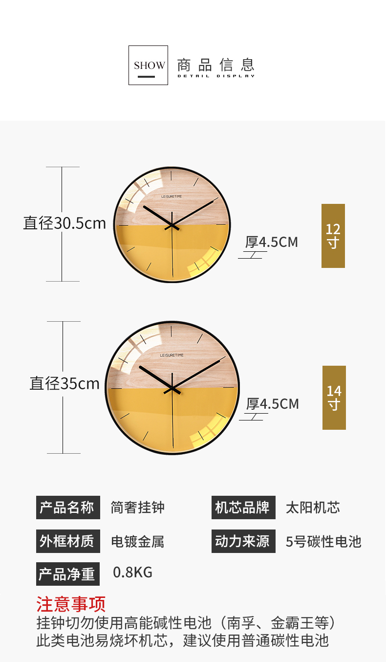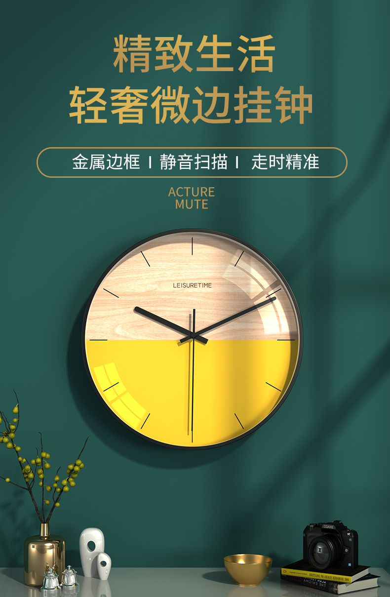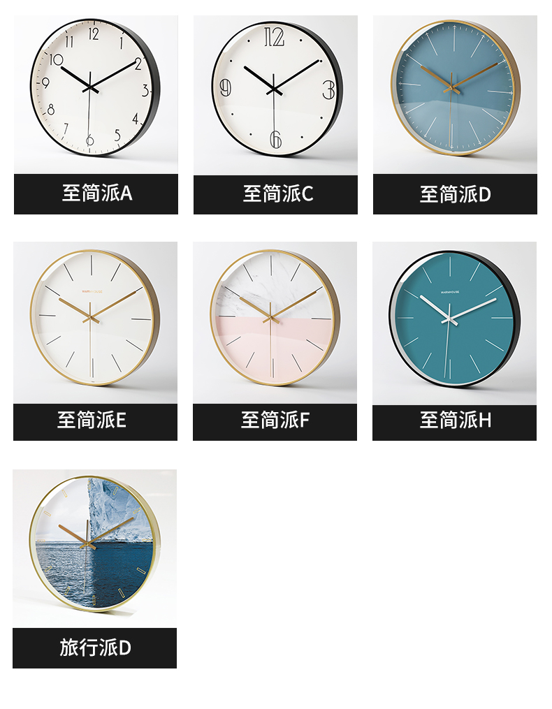 紀恒軟現代簡約北欧掛鐘居間の個性家庭用静音時計創意石英時計壁時計壁鐘芸術デジタルファッション無声免穴壁掛式色彩派-A 14寸(直径35 cm)