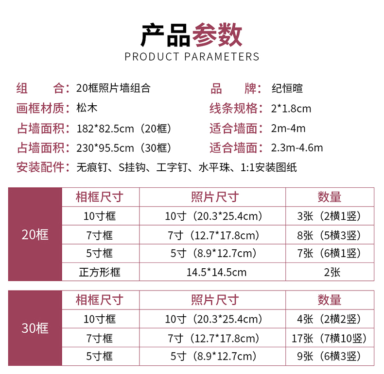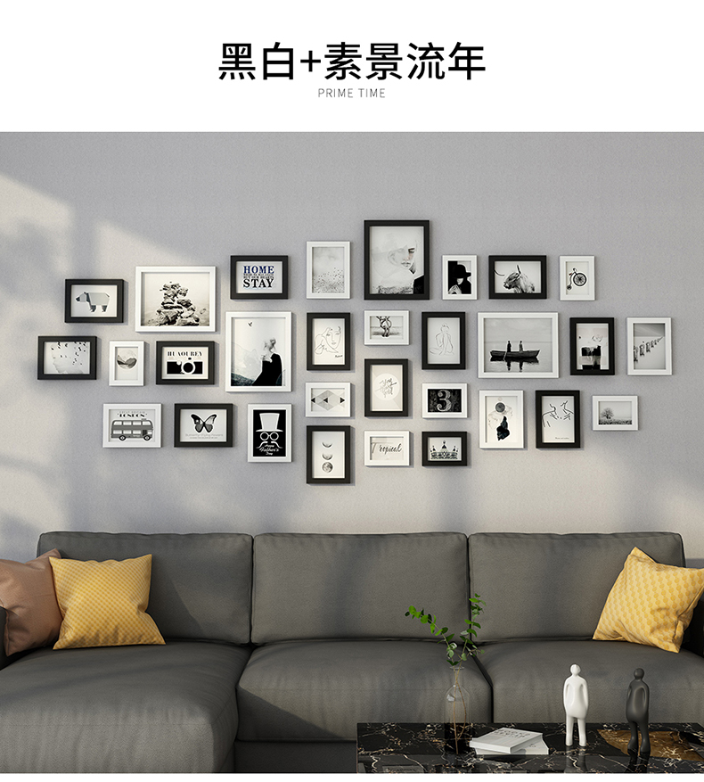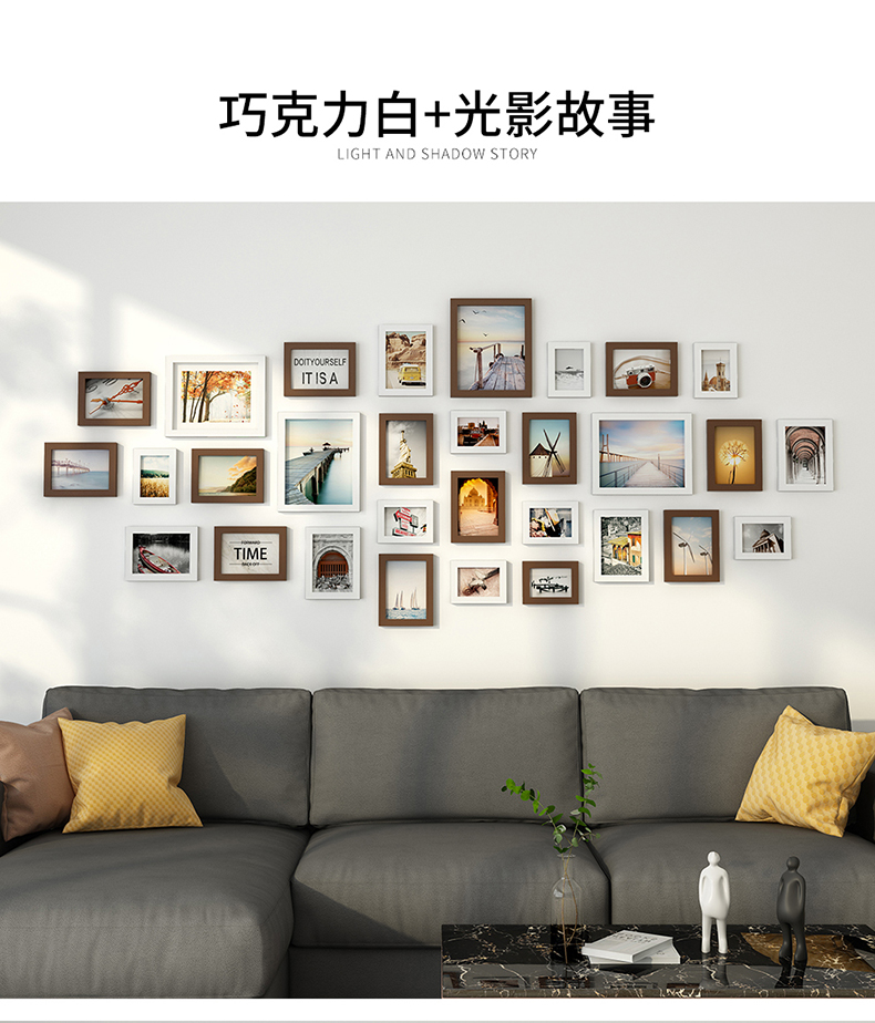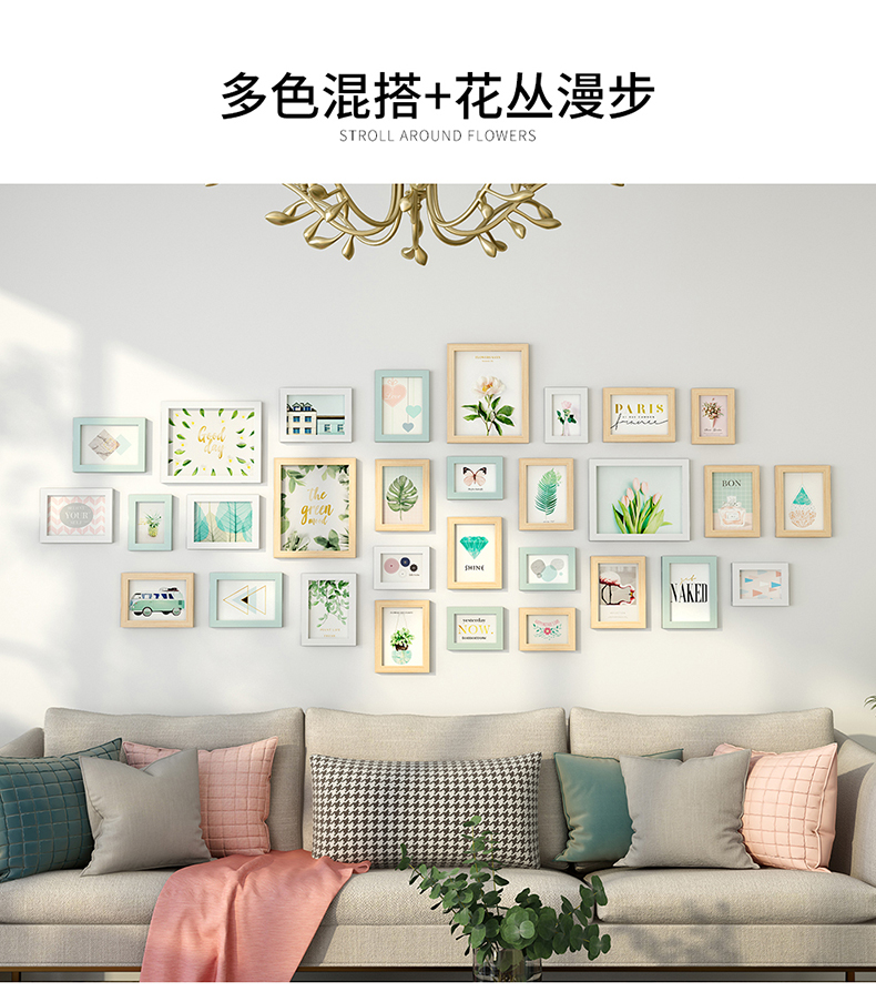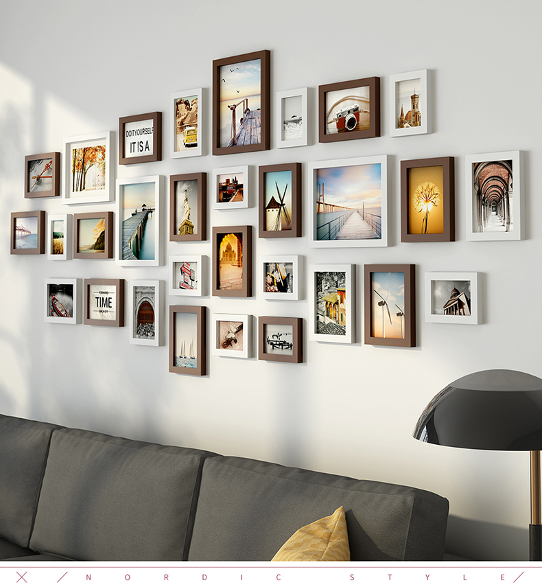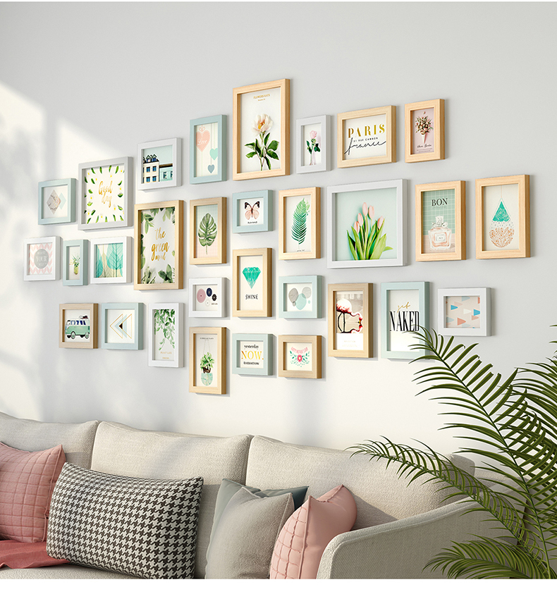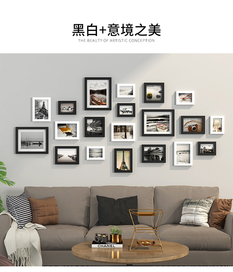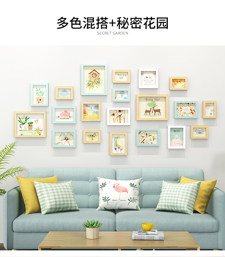 紀恒ふわふわの実木写真壁フォトフレームの組み合わせ創意客間装飾額縁木製ソファの背景壁の写真フレーム掛壁の組み合わせの大きなサイズの表装枠子供家庭用の全家族の写真壁の多色混合+美しい生活(20枠)【写真価格ブランドの見積】-