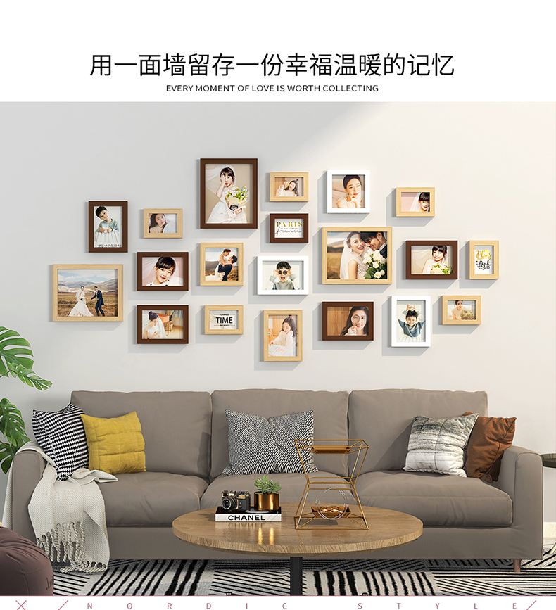 トップ 北欧現代 紀恒ふわふわの実木写真壁フォトフレームの組み合わせ創意的な客間装飾画枠木制ソファの背景壁の写真フレームの掛け替え壁の組み合わせの大きなサイズの掛け布団フレームの子供家庭全体の写真壁の多色の混合+美しい生活(20枠)