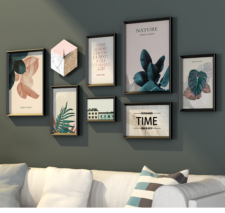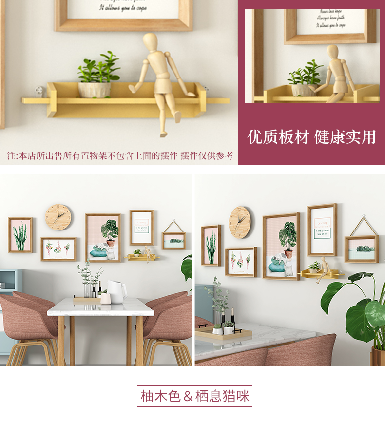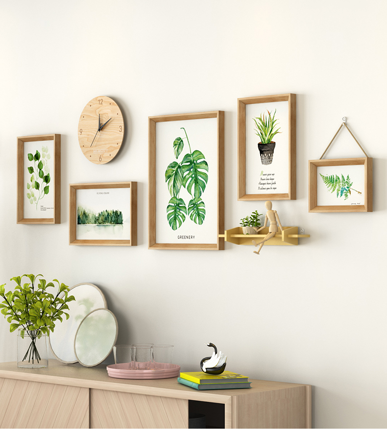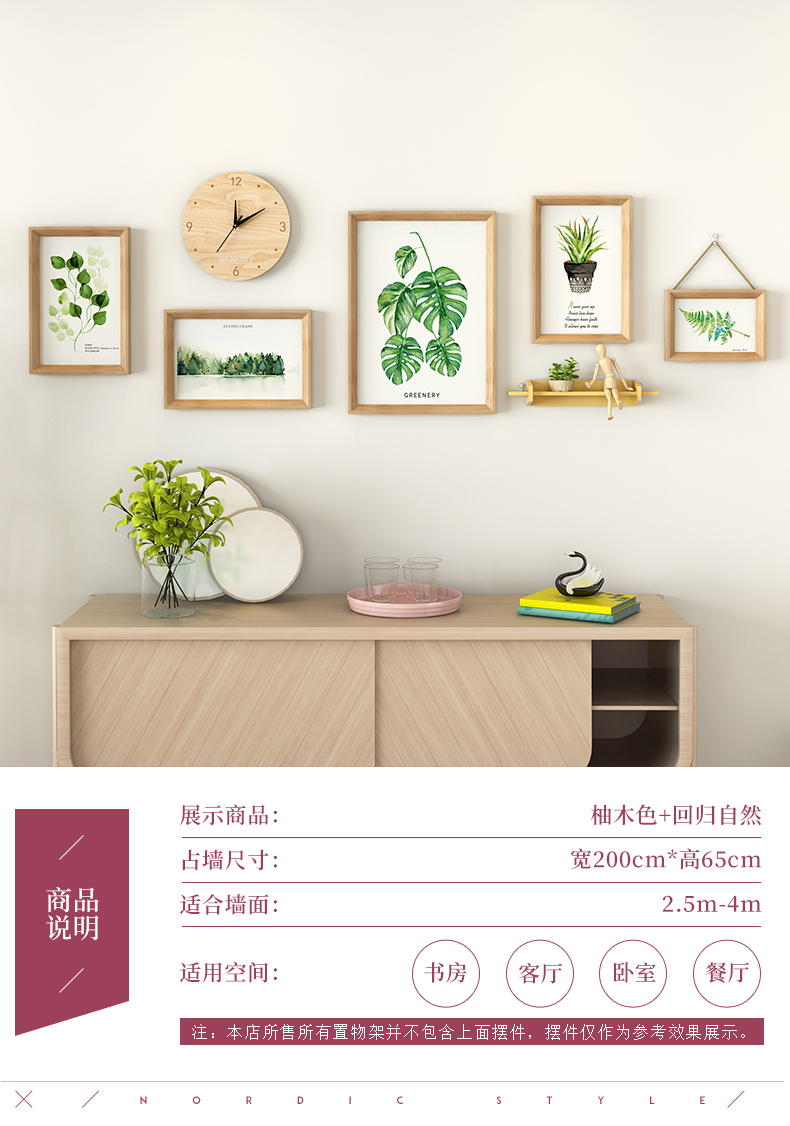 | 商品名称 | 紀恒軟客間装飾画のアイデア横断幕が小さくて清新で壁画が簡単で現代ファッション的な時計セットレストランのソファーの壁掛け画北欧風家庭壁面画柚木+回帰自然(6枠の置物棚の金) |