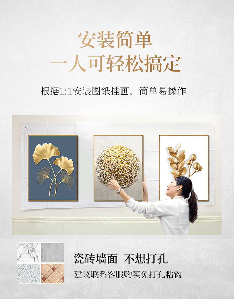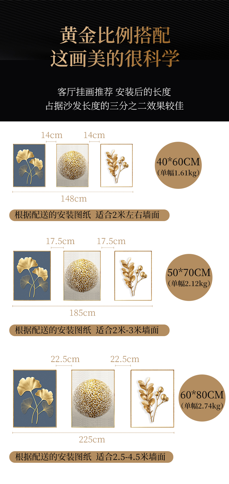 | 商品名称 | 紀恒軟らか客間装飾画ソファの背景壁壁画高級軽量豪華大気三聯画現代中国式家庭壁面掛画北欧簡単晶磁画レストラン歺ホール壁画B 42-杏福安康-黒枠60*80 cm(3.5メートルぐらいのソファーに適しています) |