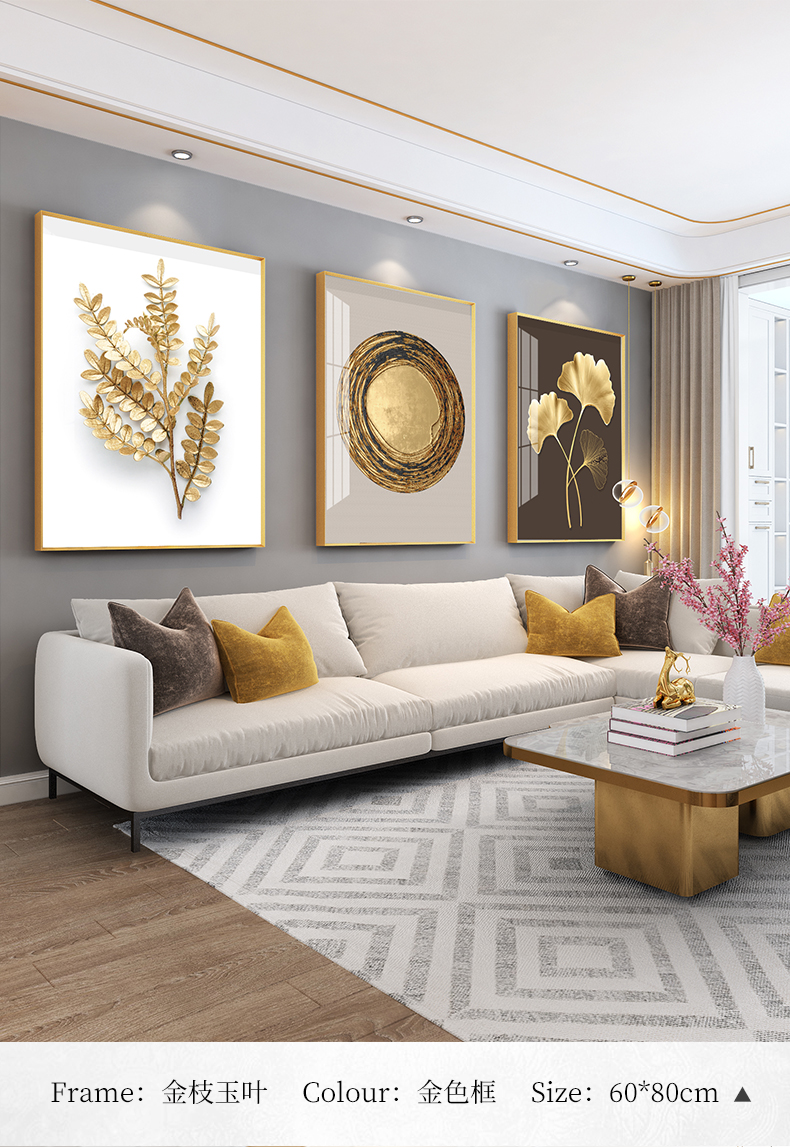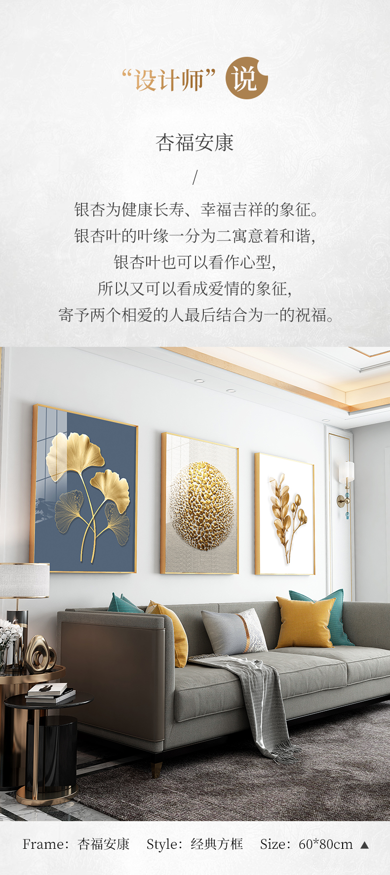 紀恒軟らかい客間装飾画ソファの背景壁壁画高級軽奢大気三聯画現代中国式家庭壁面掛画北欧簡単晶磁画レストラン歺庁ホール壁画B 42-杏福安康-黒い枠60*80 cm(3.5メートルぐらいのソファーに適しています)