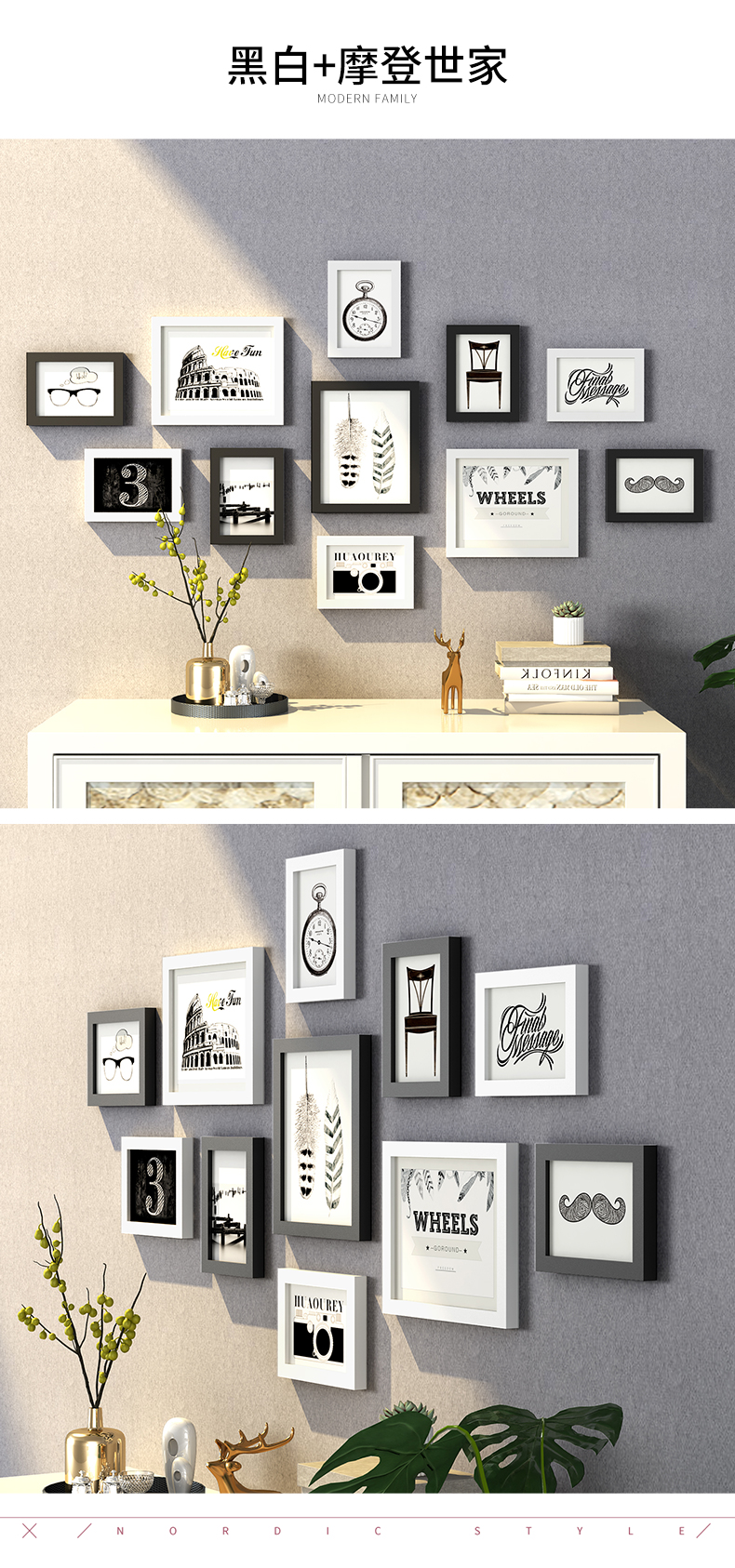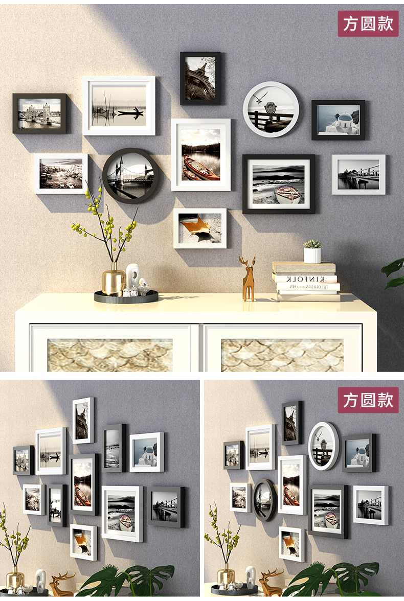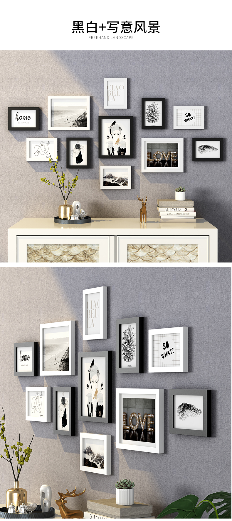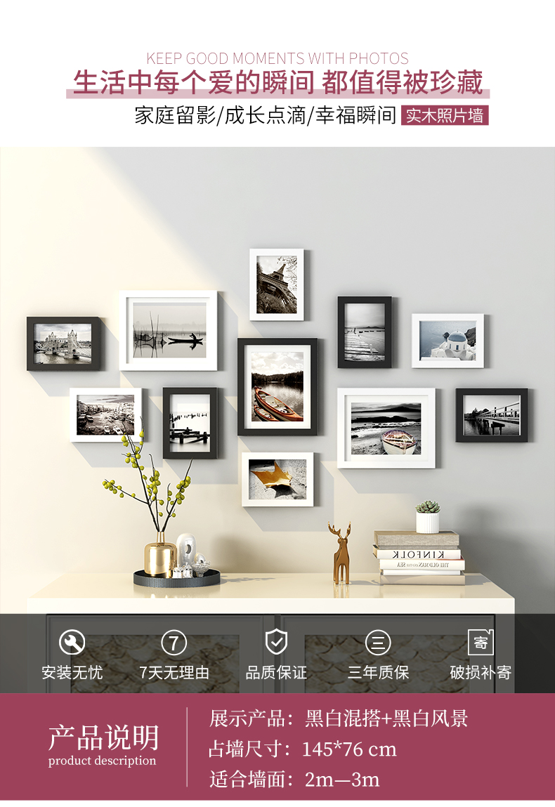 | 商品名称 | 紀恒軟写真壁フォトフレーム組み合わせリビングルームシンプル現代レストラン欧風創意実木写真壁額縁壁木製壁面装飾画枠壁円形寝室階段写真黒と白のミックス+白黒風景(方円) |