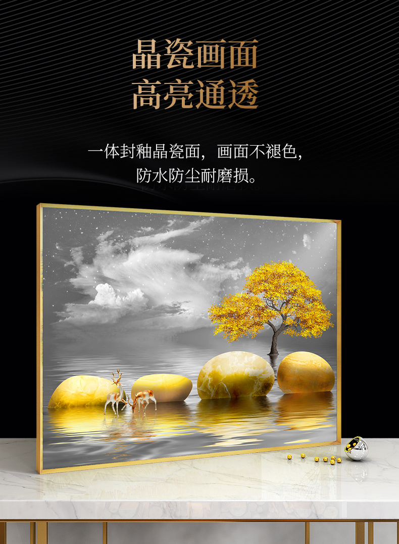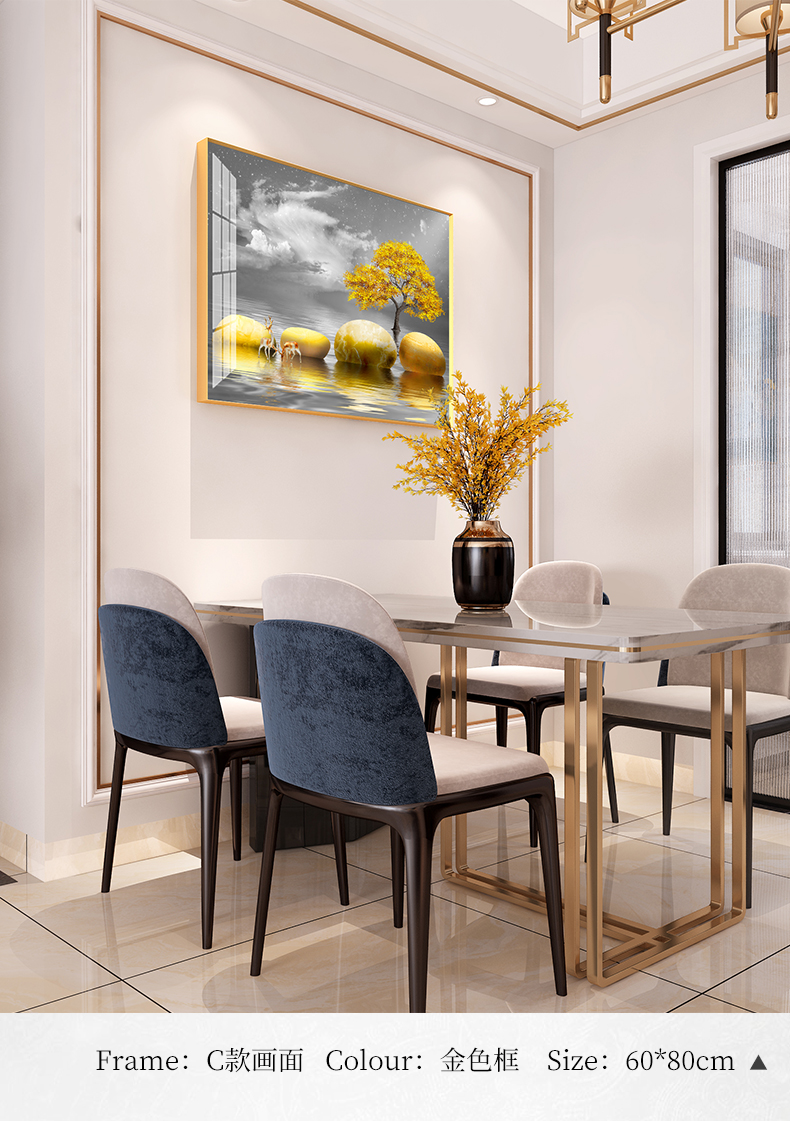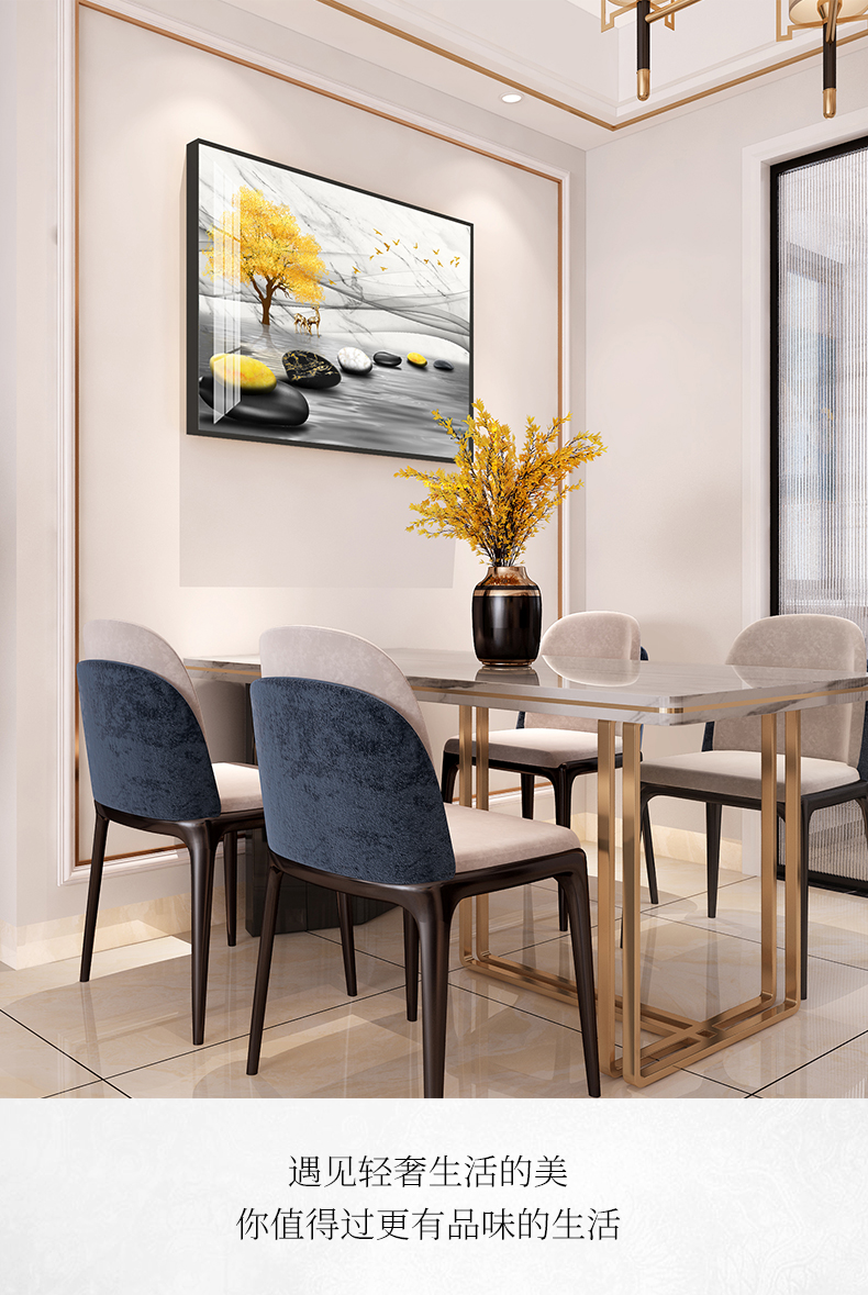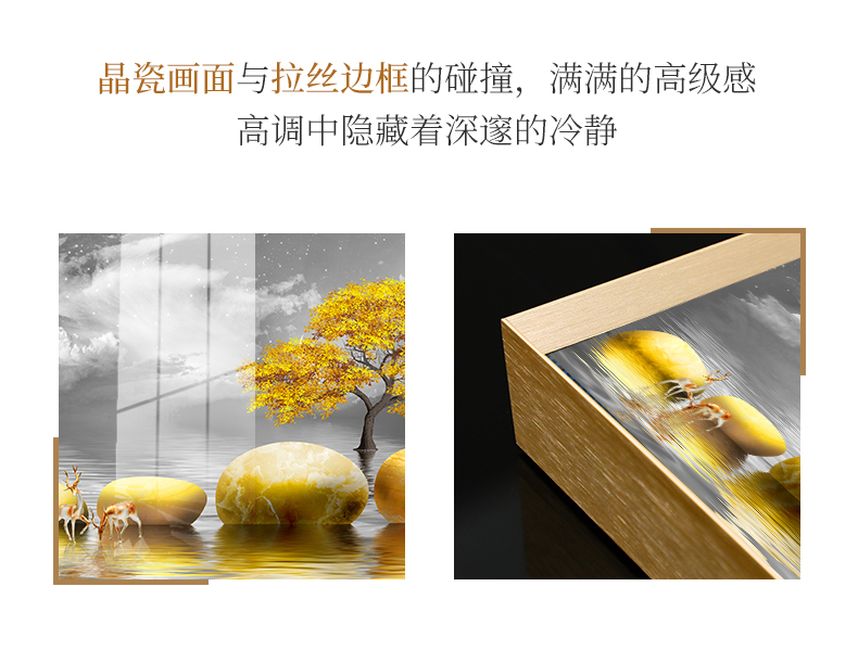 紀恒軟らかい現代簡約庁は軽奢高級レストランの装飾画の一幅の石を掛けて回転します。水晶磁器の絵は穴を開けないでください。廊下は現代中国式の食卓の上の横の壁画を描いています。C-運旺石盛-金色の枠60*80 cm