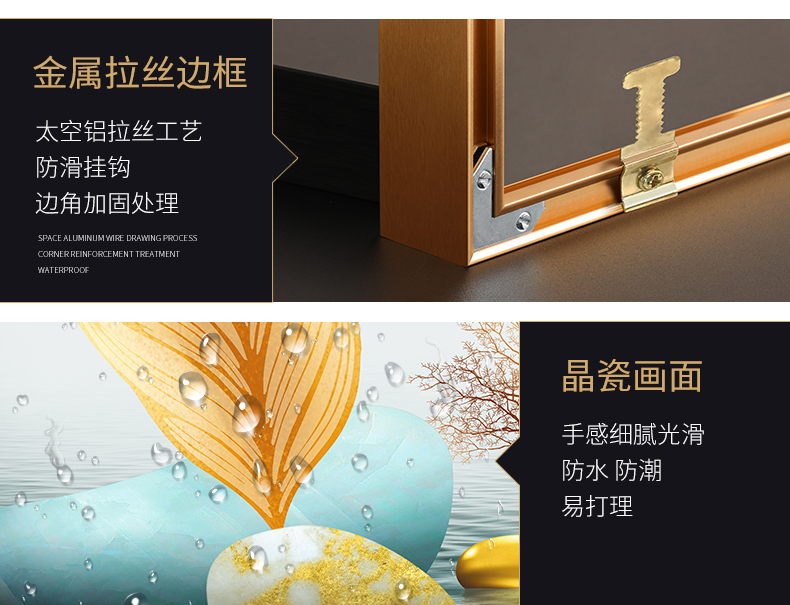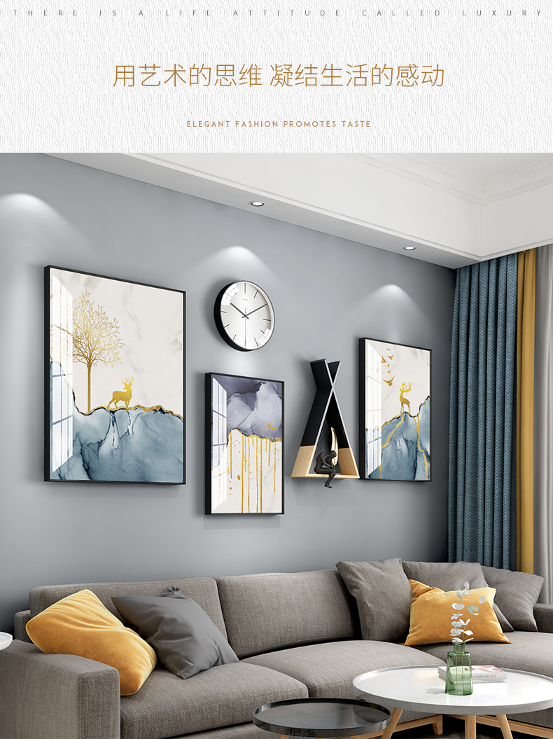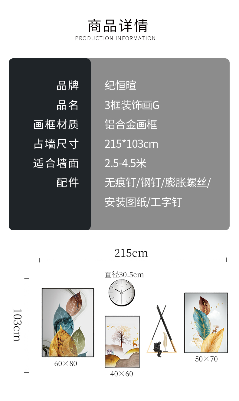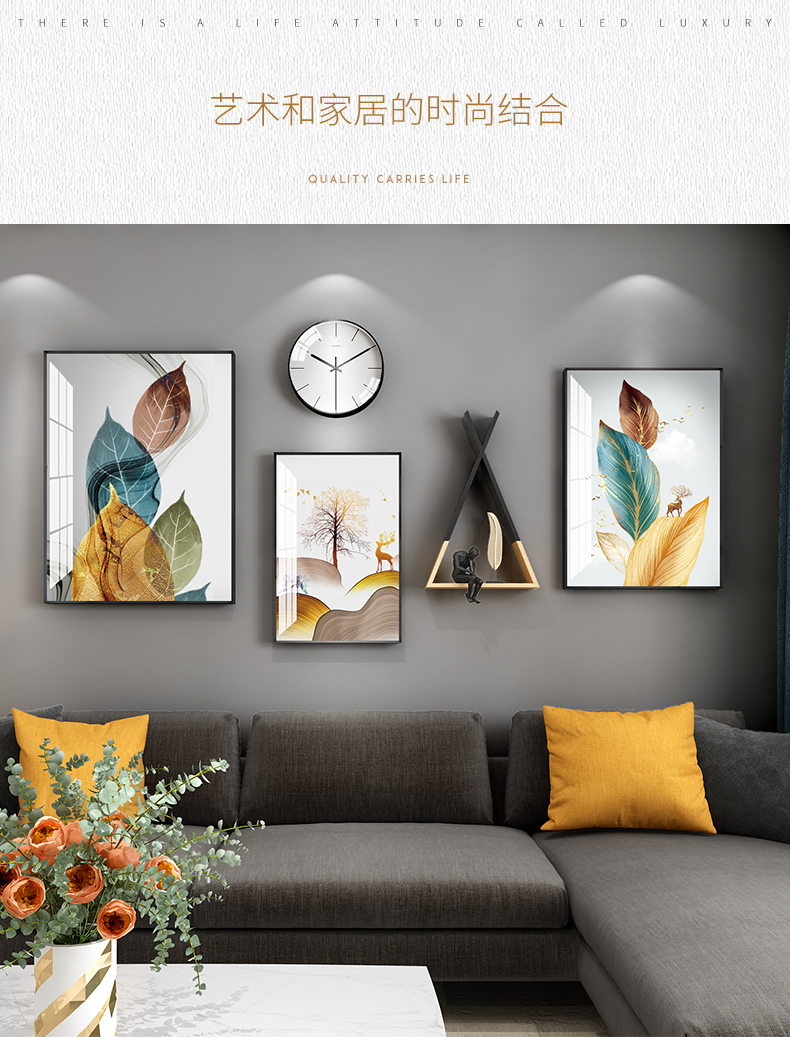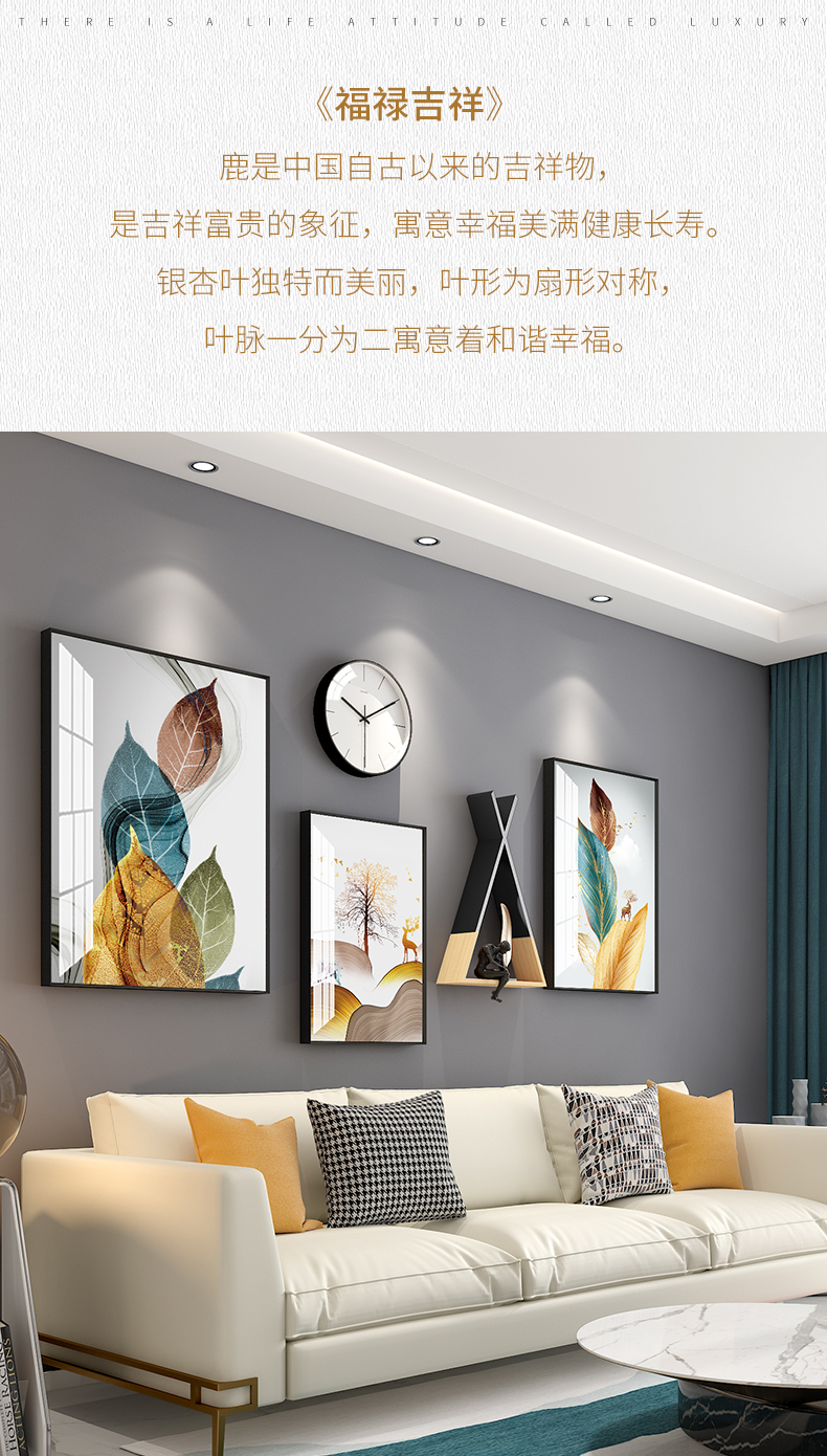 | 商品名称 | 紀恒軟北欧風客間ソファの壁の装飾画現代簡単で豪華な装飾画ファミリーレストラン歺庁壁面の大気新中国風招财風水壁画福禄吉祥-黒い枠の幅は215*高さ103 cmで、2.5-4.5メートルのソファーの壁に適しています。 |