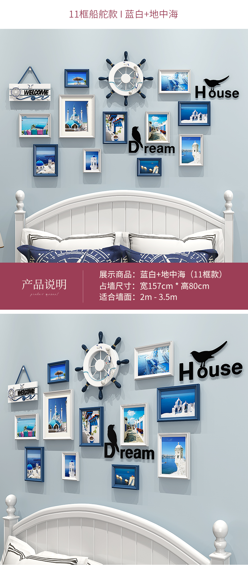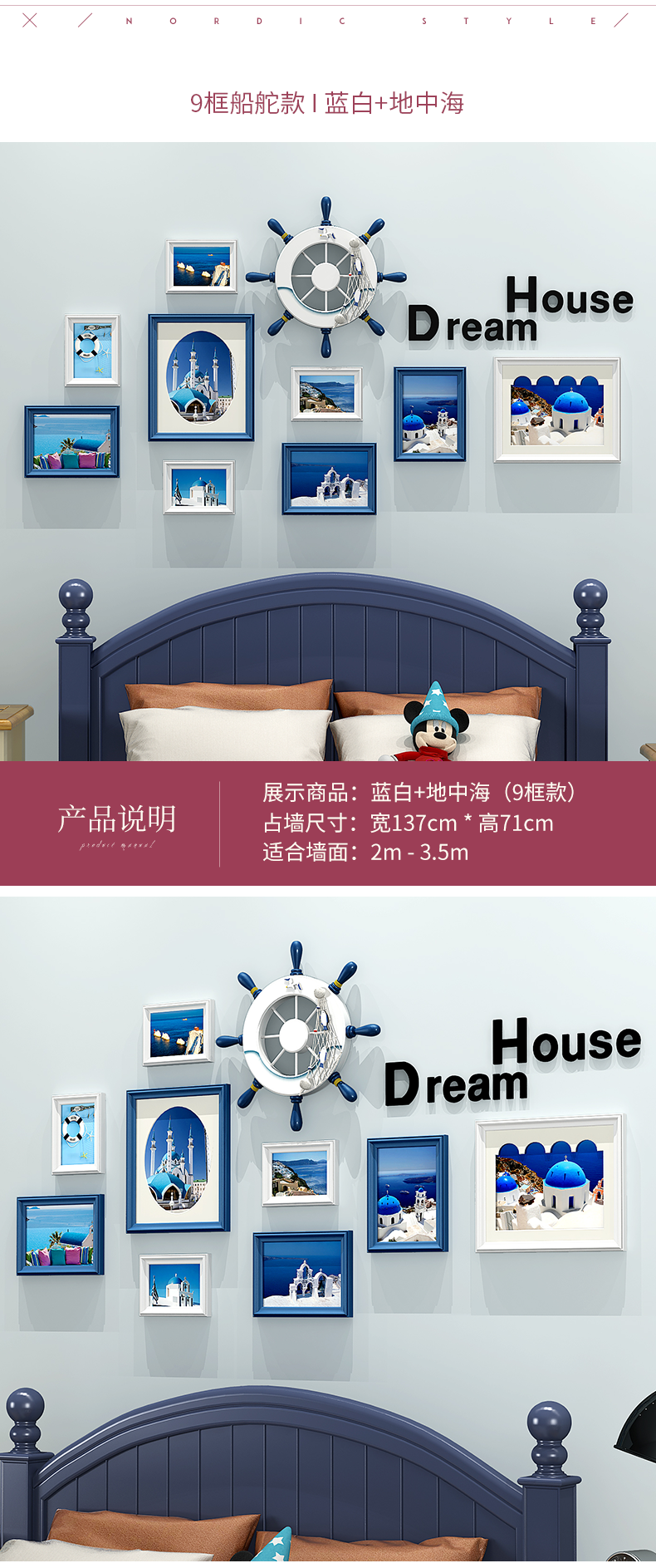 紀恒ふわふわの男の子の寝室装飾画壁北欧風のベッドの掛け軸の組み合わせ現代簡単な子供部屋の装飾品のペンダントの実用的な木のソファーの背景の壁画のアイデアリビングルームの青い枠+地中海(9枠の船の舵版)