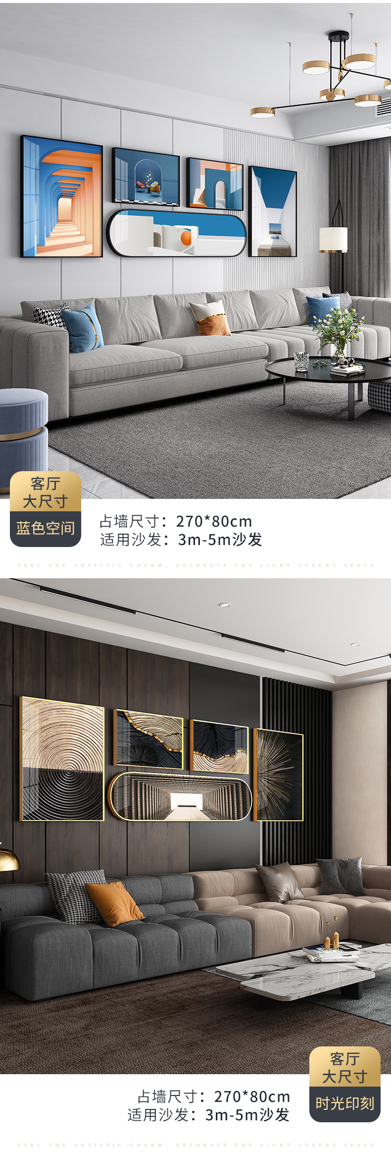 紀恒ふわふわ客間の背景壁装飾画の超大型高級セット掛画ホームホールの軽豪華な大気創意円角壁画別荘金色葉莫蘭迪浪漫壁画芸術生活全体の幅は2.7メートルで、高0.8メートル(アルミニウム合金フレームの磁器画)