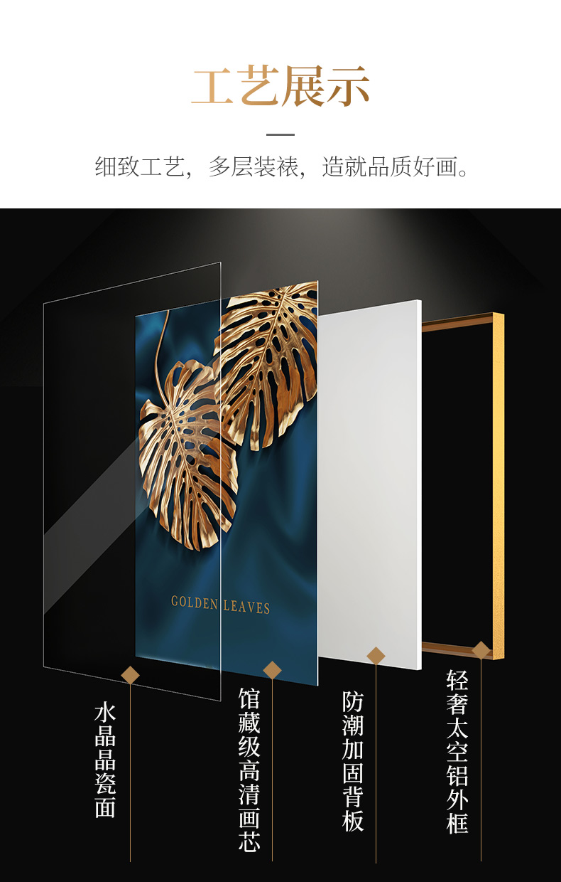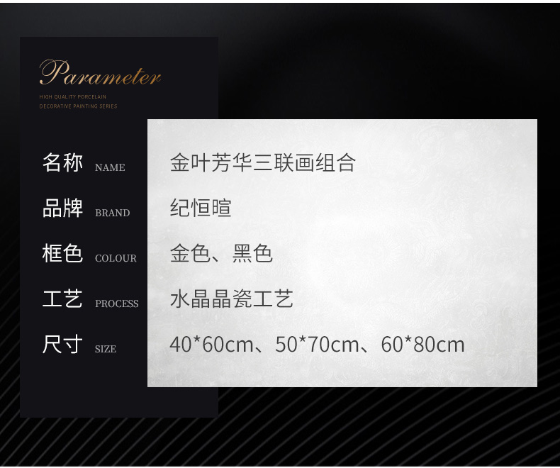 | 商品名称 | 紀恒軟らかい現代軽奢掛画客間ソファ背景壁装飾画三連画縦版本北欧簡約風テレビ壁画室内晶磁画免除打孔壁画家装壁画B-金葉流光-金色枠50*70 cm(2.5メートルぐらいのソファーに適しています) |