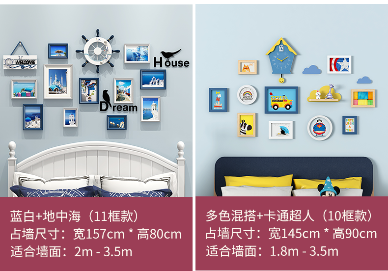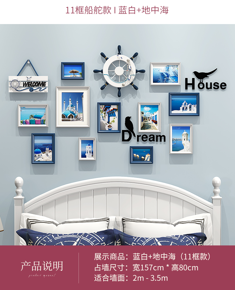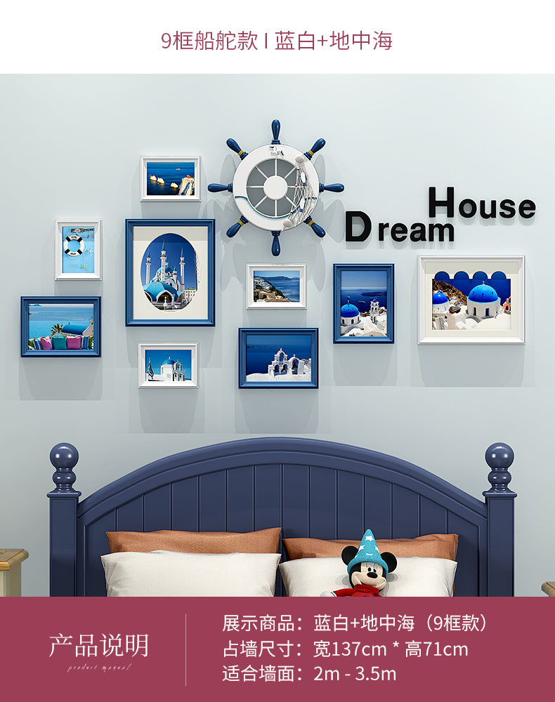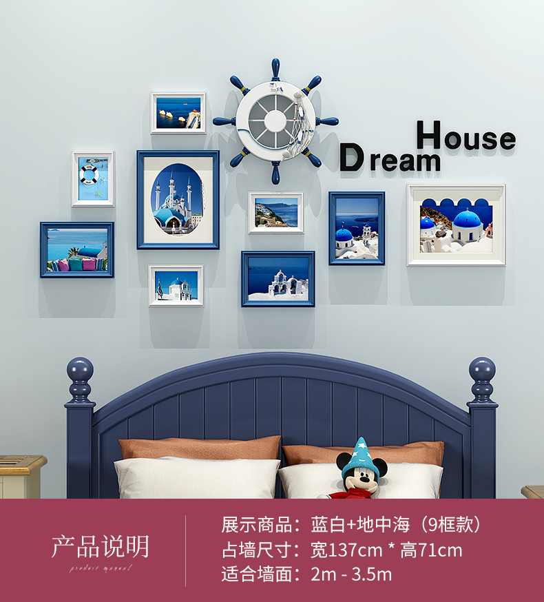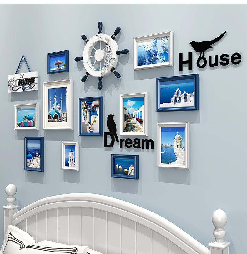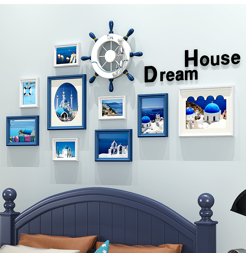 | 商品名称 | 紀恒軟創意写真壁フォトフレーム壁壁壁掛壁組合せ北欧風木製子供部屋男の子部屋客間シンプルな現代写真壁壁装飾フレームフレームフレーム9枠+青白ミックス+地中海画芯 |