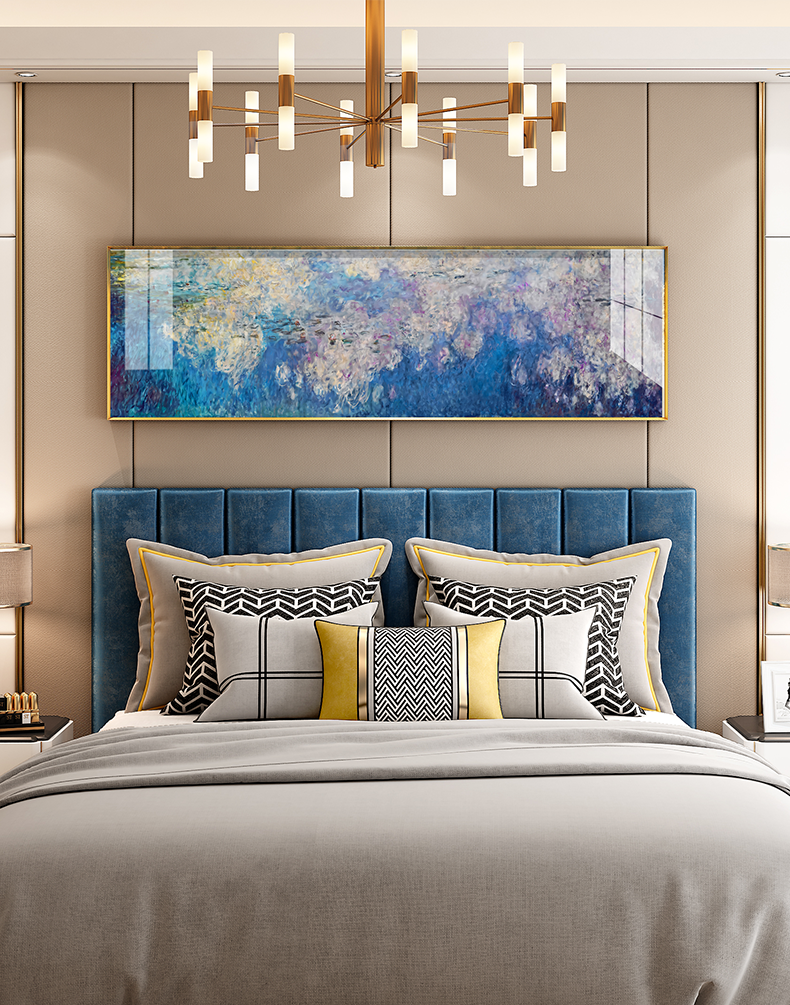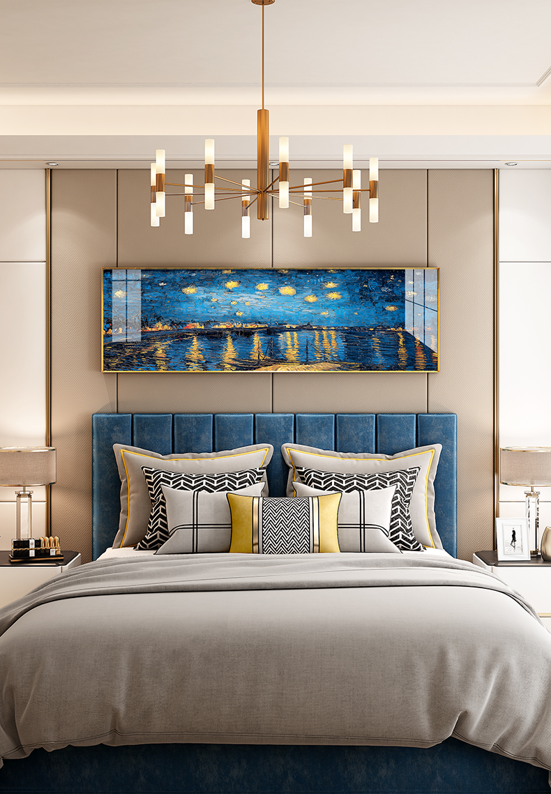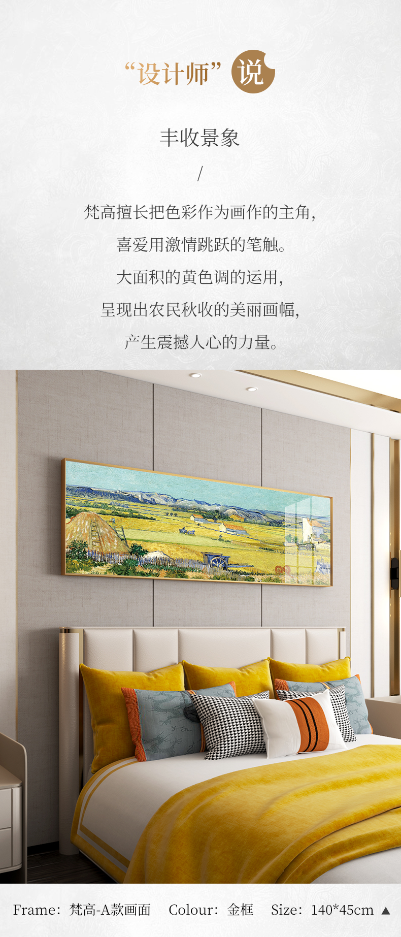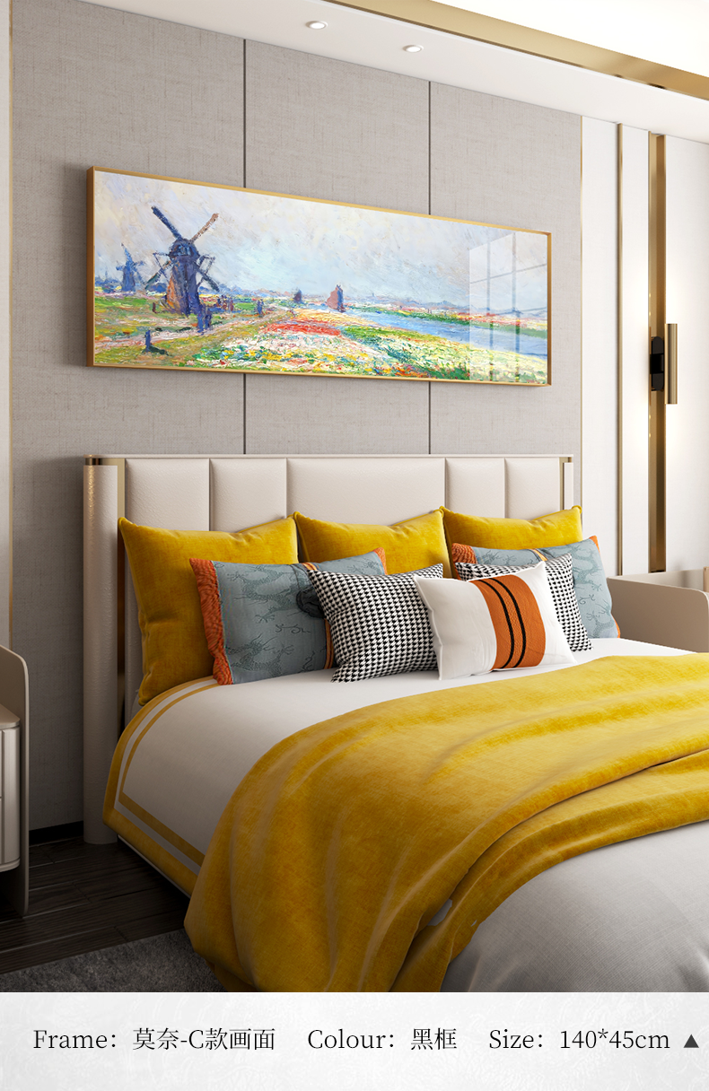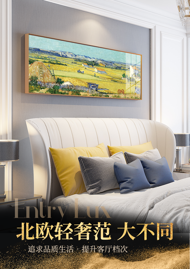 商品名称紀恒ふわふわベッドルームの枕元に世界の名画を描いたゴッホモネの一幅の横柄の掛け軸画の主寝台創意芸術晶磁器の軽豪華な北欧現代客間ソファの背景壁にゴッホの絵を描く。