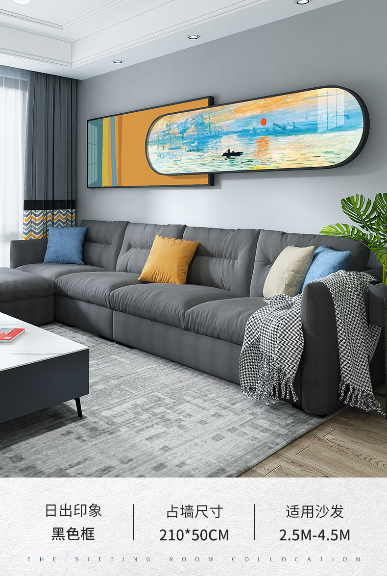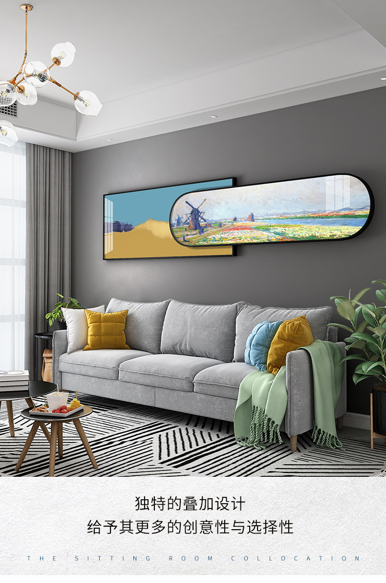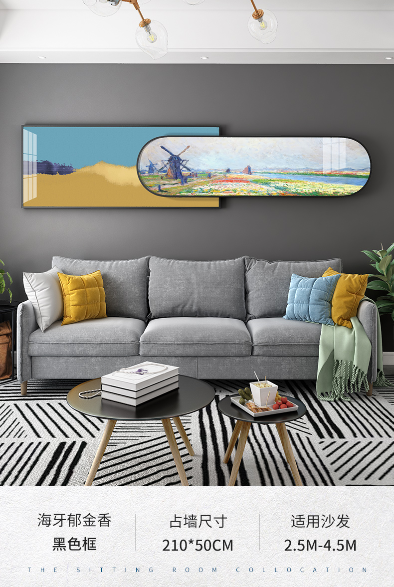 紀恒ふわふわ世界名画のゴッホ風景装飾画リビングのソファーの壁掛画を重ね合わせて創意的な円角水晶焼きの壁画家の暖かいロマンチックな雰囲気が漂う豪華な大気壁画C-麦田-黒いアルミニウム合金のフレーム210*50 cm(2.5-4.5メートルぐらいのソファーに適しています)
