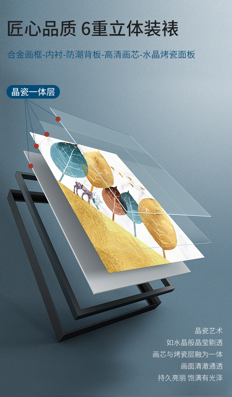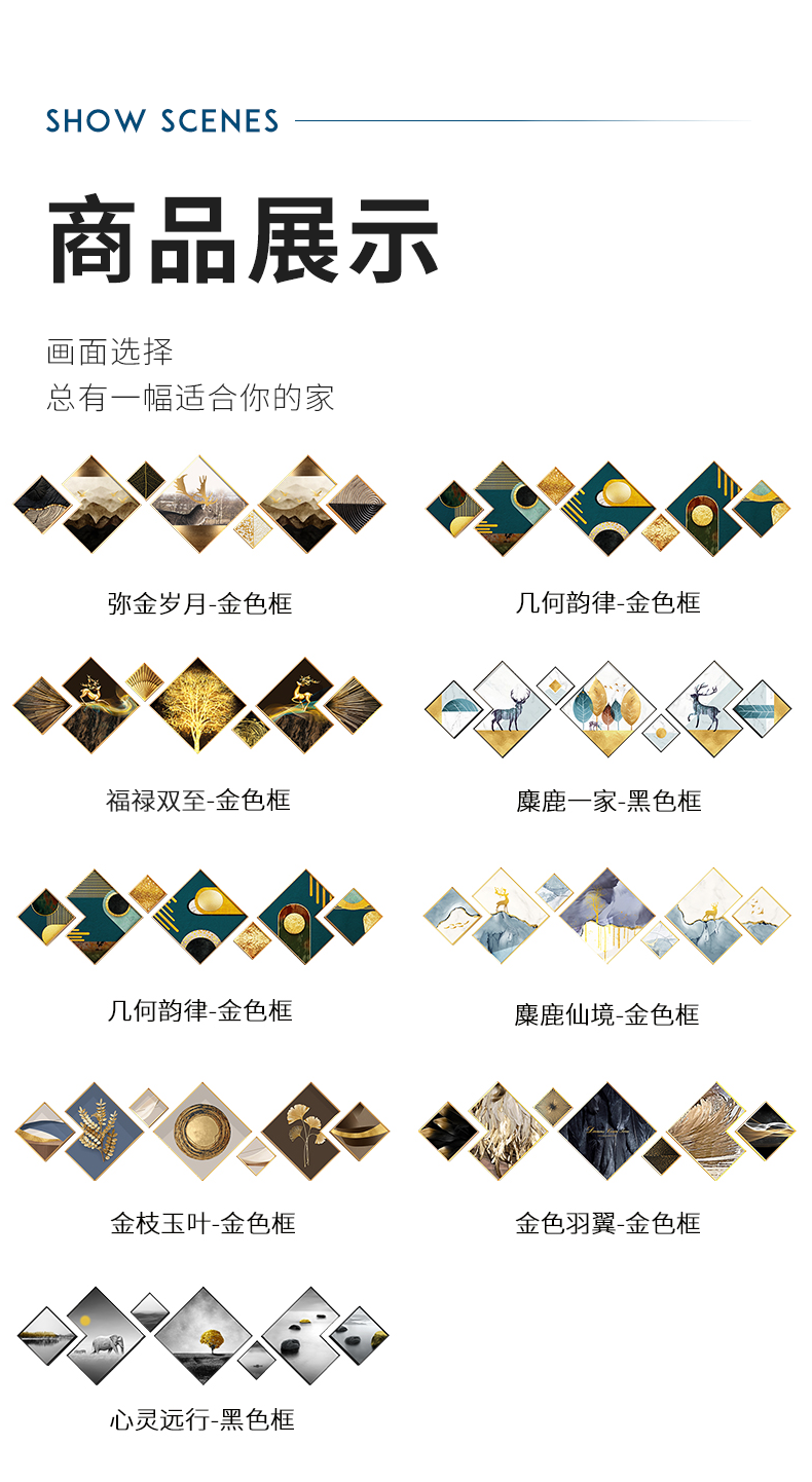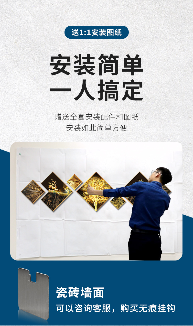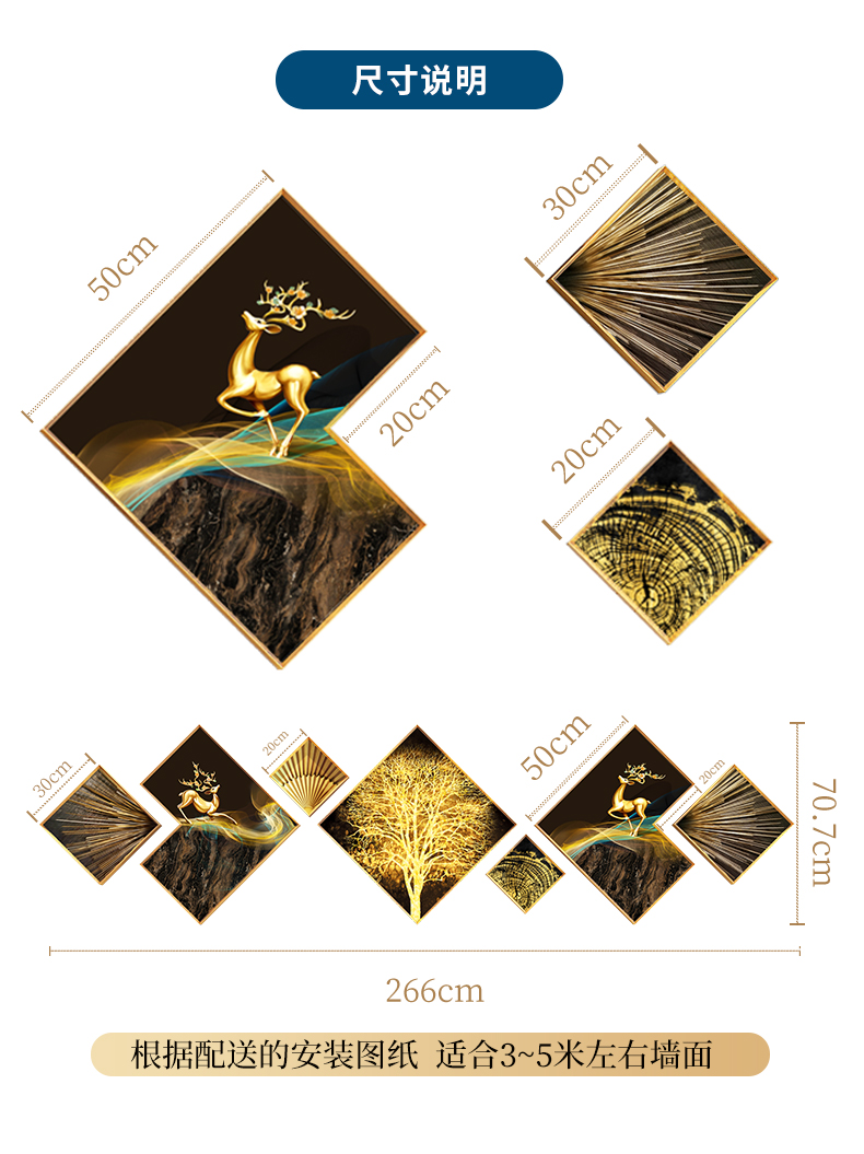 紀恒軟晶磁画客間装飾画招财風水山水画三連画ソファの背景壁掛画簡単で贅沢な風と大気免除ホールの創意的な家庭壁画B 09-B-金鹿送福-金色枠60*80 cm(3.5メートルぐらいのソファーに適しています)