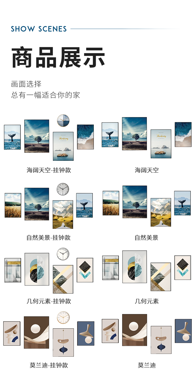 | 北欧の風景ソファの後ろの壁に掛けられた家族の個性的な組み合わせ画の掛け時計を持っています。ほのぼのとしたおしゃれな水晶焼き磁器の小さな清新な緑植壁画モランドディの総幅は240 cmで、2.5-4.5メートルのソファーに適しています。 | 北欧の風景ソファの後ろの壁に掛けられた家族の個性的な組み合わせ画の掛け時計を持っています。ほのぼのとしたおしゃれな水晶焼き磁器の小さな清新な緑植壁画モランドディの総幅は240 cmで、2.5-4.5メートルのソファーに適しています。 |