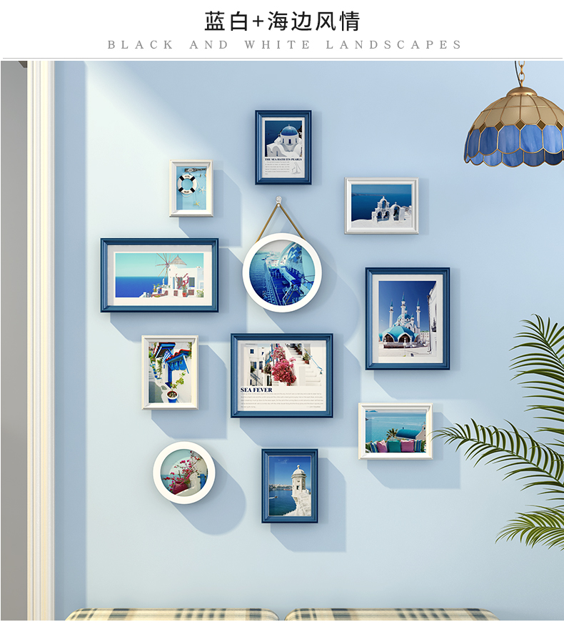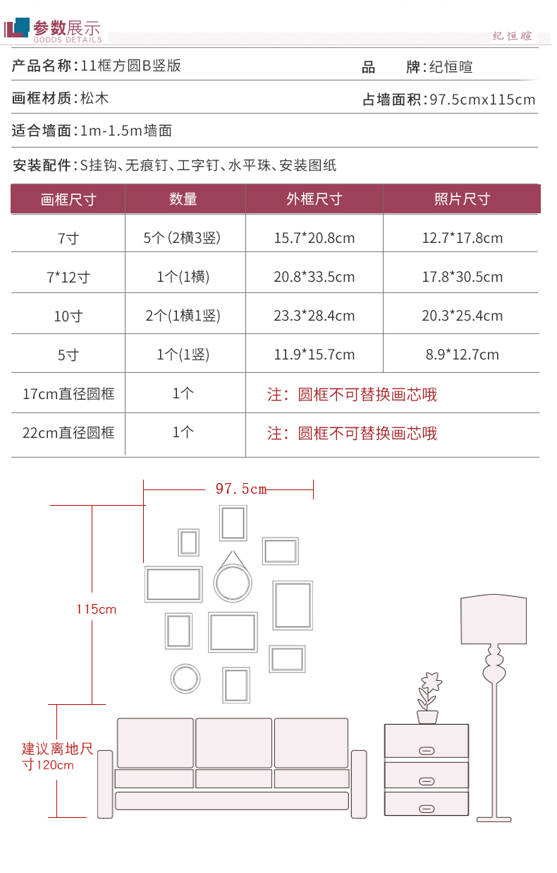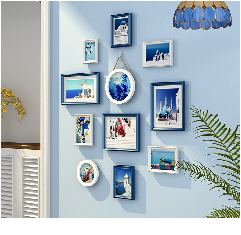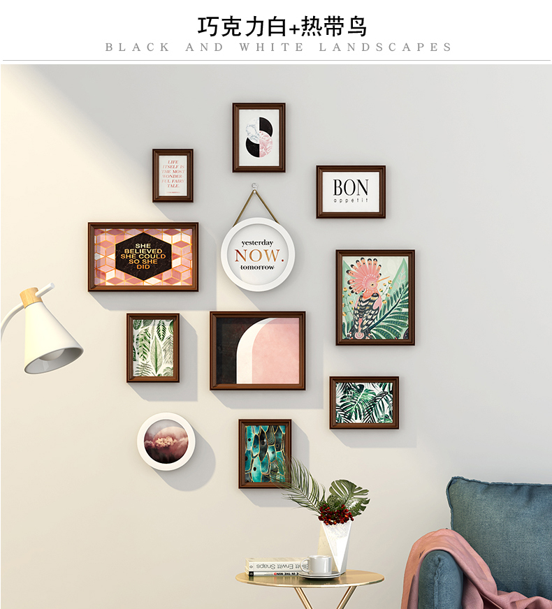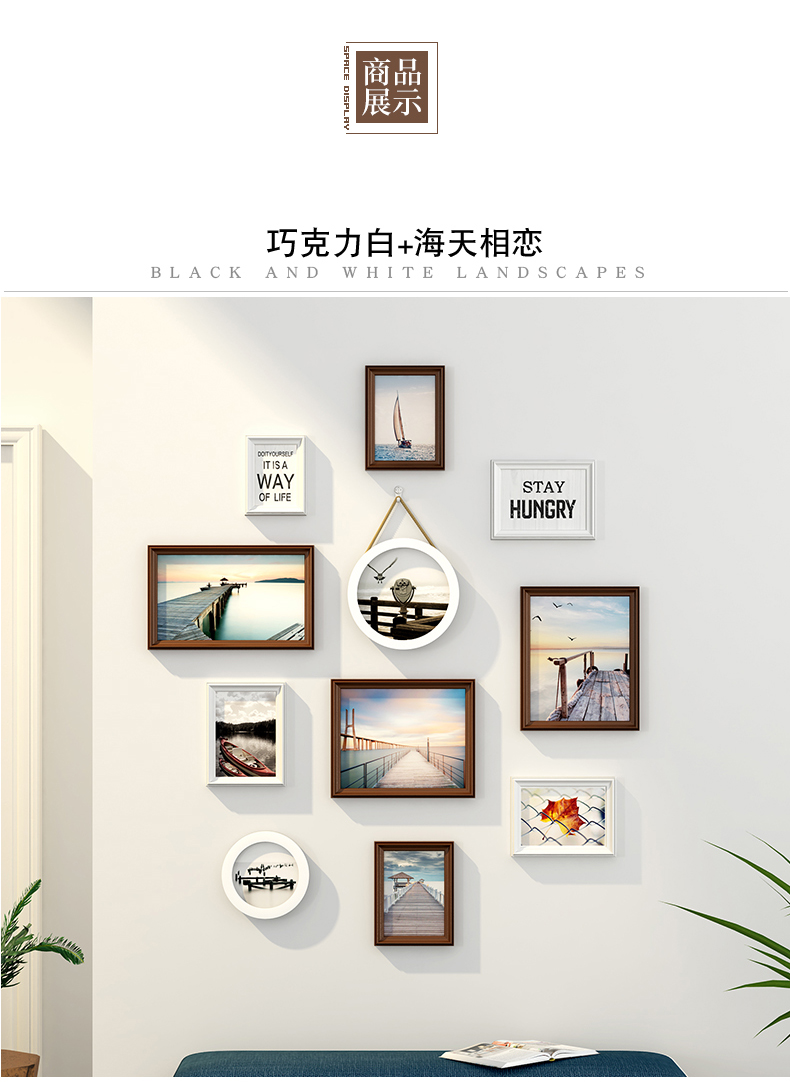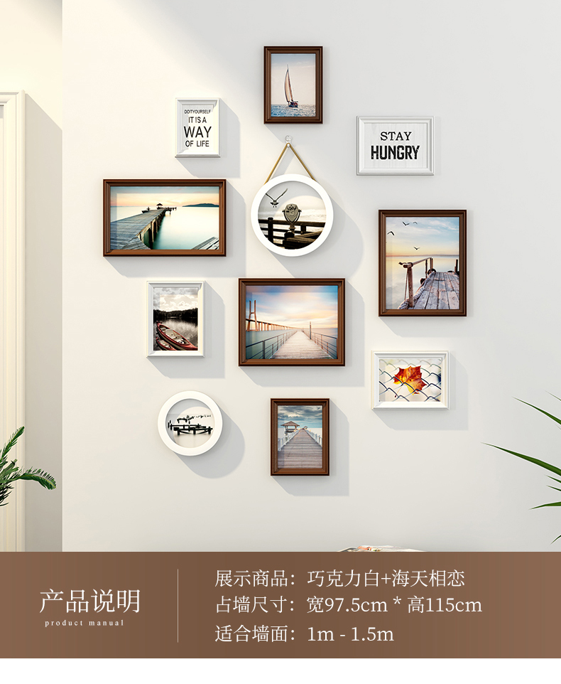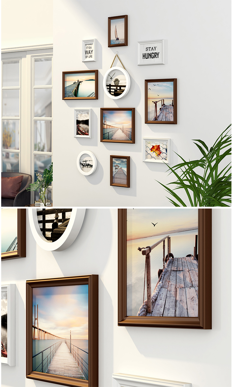 紀恒ふわふわフォトフレーム壁創意セット階段写真壁装飾縦版北欧実木額縁小写真壁円形木製欧風掛け式壁に掛けられたホワイト表装フレームチョコレートホワイト+海天相愛【写真価格ブランド見積】