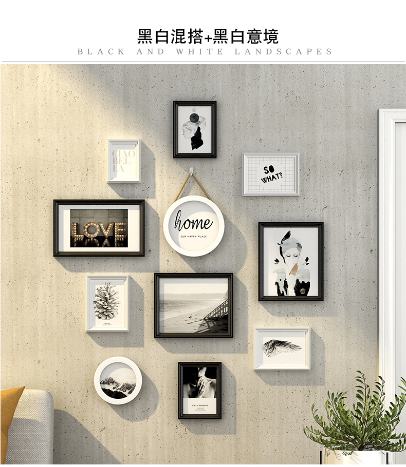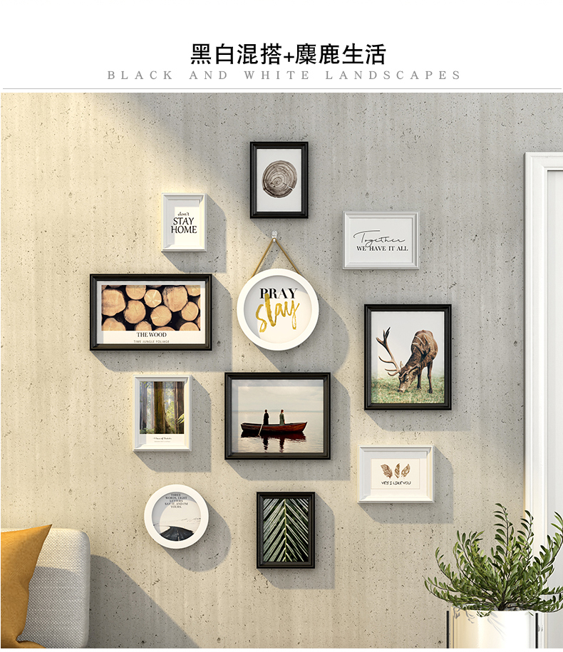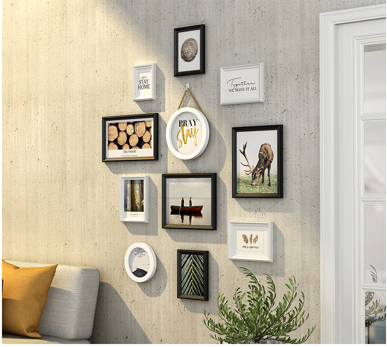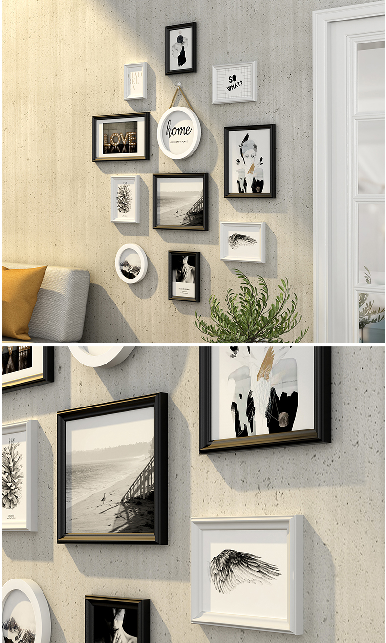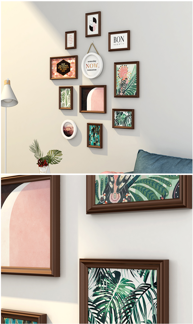 紀恒ふわふわリビング装飾画現代簡約写真壁セット北欧スタイルフォトフレーム正方形の写真フレーム寝室創意壁壁の木製フレーム壁壁壁のフレームを掛けます。