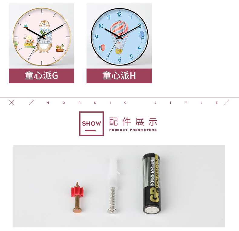 紀恒ふわふわキッズルーム掛け時計静音アニメ創意室リビングルーム時計時計掛け時計北欧シンプルファッションデジタル無声鐘壁掛式幼稚園子供心B 12寸(直径30.5 cm)