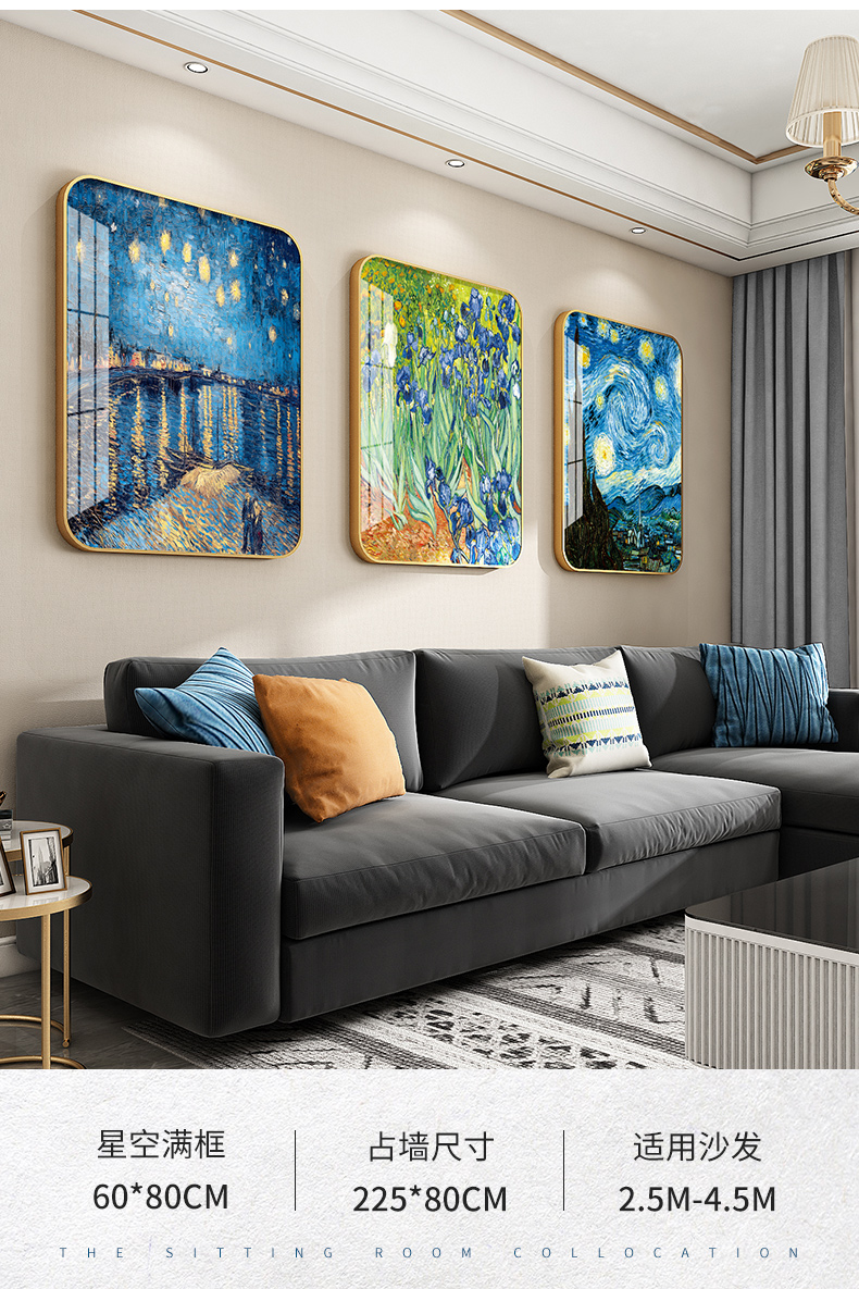 | 商品名称 | 紀恒ふわふわゴッホ装飾画世界名画客間ソファ壁掛画欧式暖かい円角三連画様式間ロマンチックな雰囲気芸術壁画高級なライトリッチな風景壁画D-星空いっぱい枠-金色アルミニウム合金フレーム50*70 cm(2.5メートルぐらいのソファーに適している) |