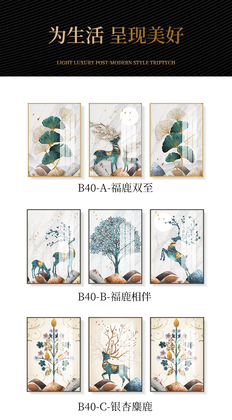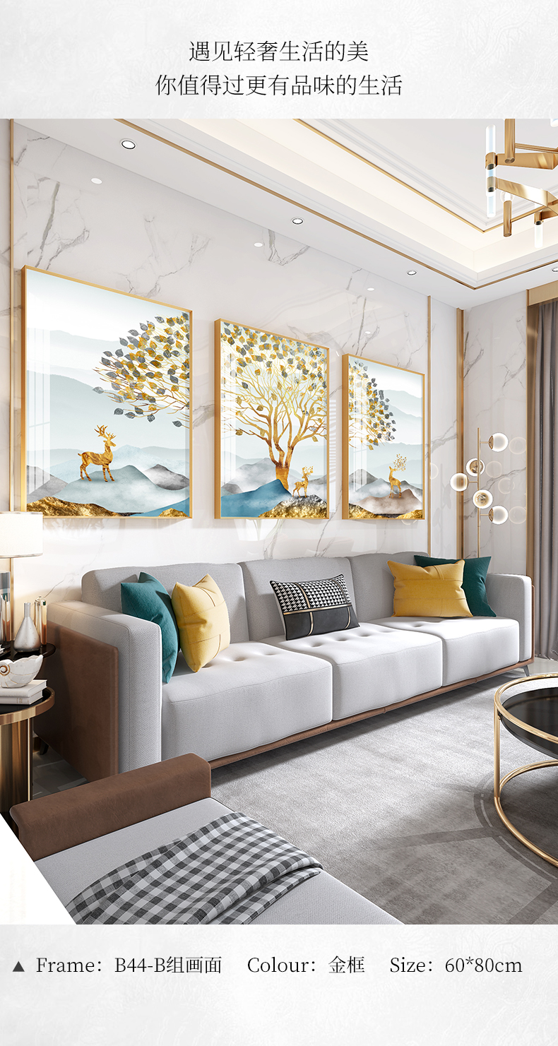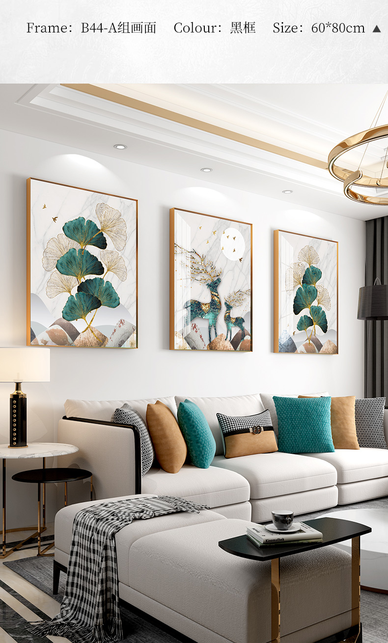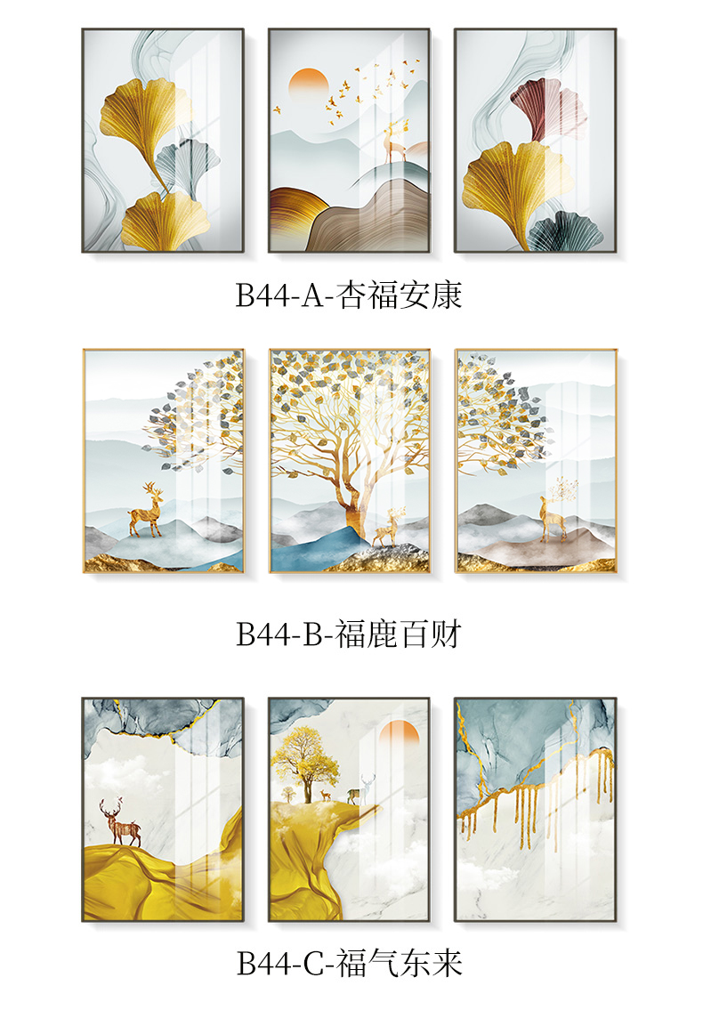 紀恒ふんわりとした新しい中国式のリビングルームのソファーの壁に装飾された高級な軽奢なテレビ壁の上に掛けられた絵は招财福鹿の描いた北欧風のレストランの通路の壁画B 44-A-杏福安康-黒い枠60*80 cm(3.5メートルぐらいのソファーに適しています)を招きます。