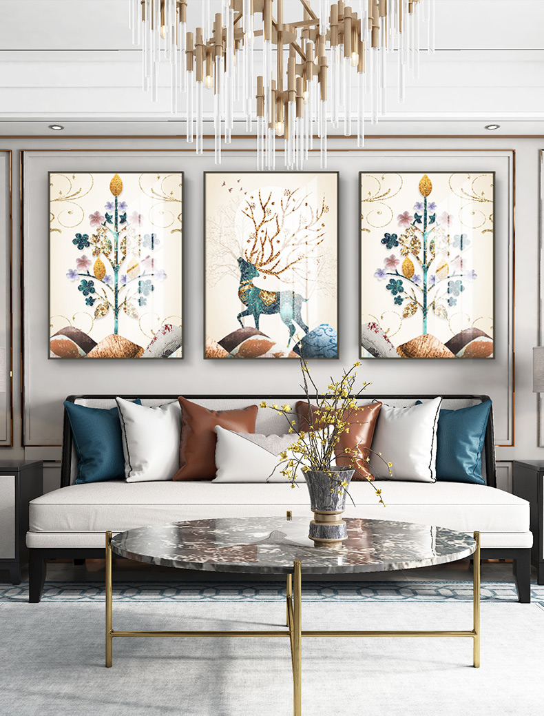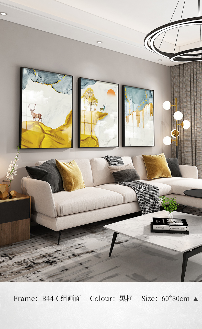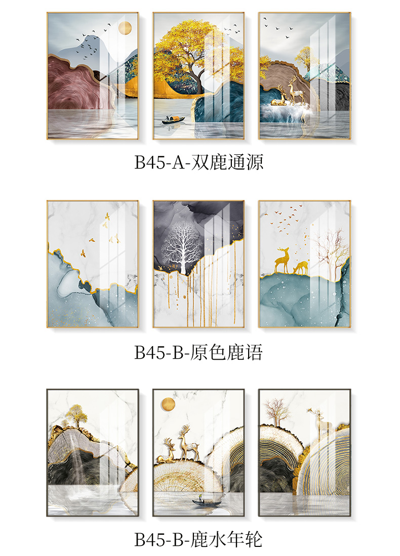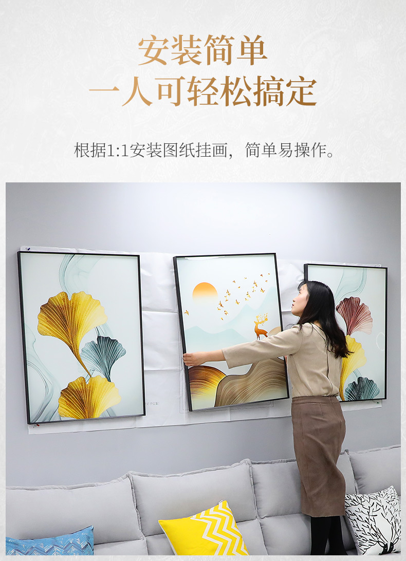 紀恒ふんわりとした新しい中国式のリビングルームのソファーの壁に装飾された高級な軽奢なテレビ壁の上に掛けられた絵は招财福鹿の描いた北欧風のレストランの通路の壁画B 44-A-杏福安康-黒い枠60*80 cm(3.5メートルぐらいのソファーに適しています)を招きます。