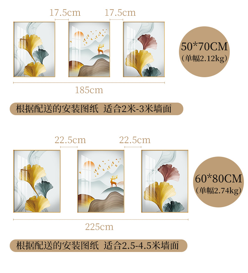 | 商品名称 | 紀恒軟らかい新中国式客間ソファの壁面装飾画高級な軽奢なテレビ壁の上の掛け絵招财福鹿の描いた北欧風レストランレストランレストランの大通りの壁画B 44-A-杏福安康-黒い枠の60*80 cm(3.5メートルぐらいのソファーに適しています) |