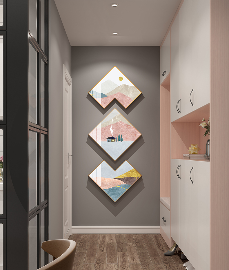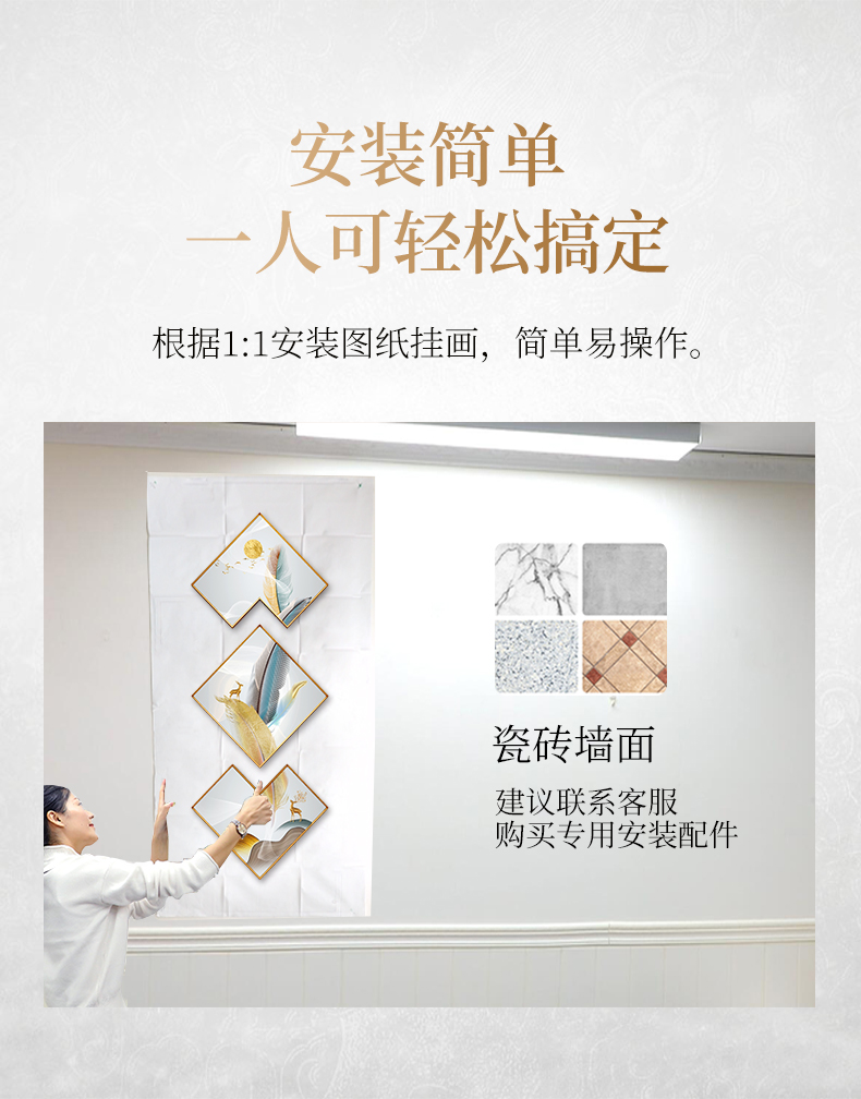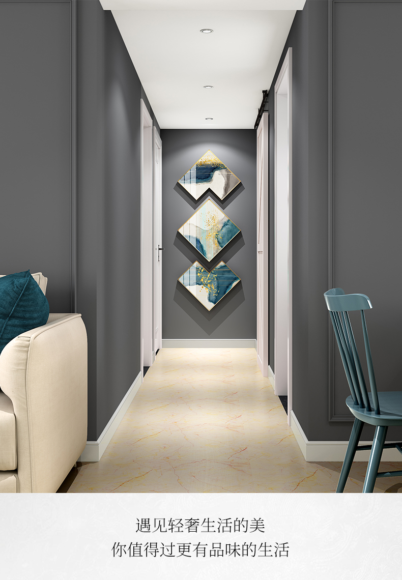 紀恒の暖かい玄関に入ると、現代のライトで豪華な装飾画が施された磁器画の大気セットの掛け軸が描かれていて、家相を招きます。鹿は廊下の抽象的な背景の壁に沿って、B-歩調が高くなります。金色の枠は壁のサイズを占めます。幅70.7 cm*高さ180 cmです。