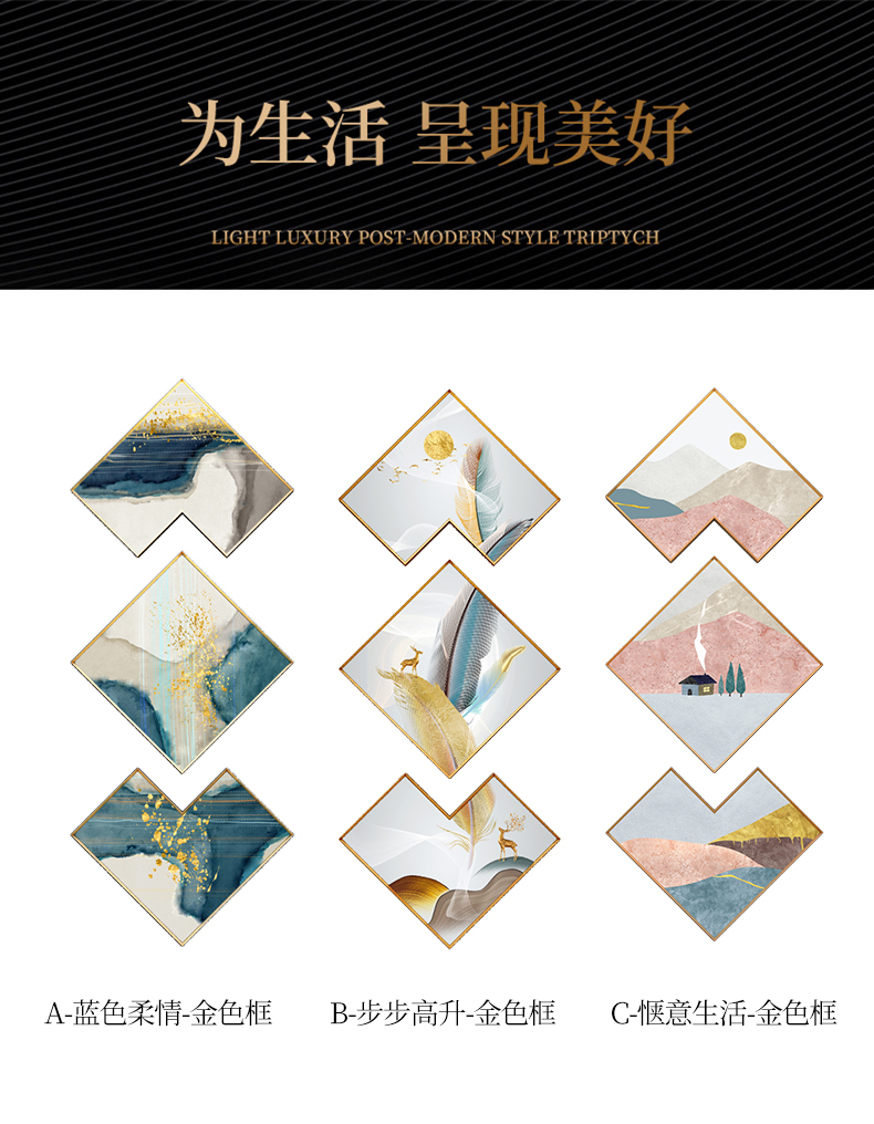 紀恒ふわふわ客間装飾画は、軽くて豪華な高級なアイデアを描いて、水晶磁器の絵を描いて、お金を招きます。鹿の円形の二連は抽象的な横断幕を組み合わせました。長い壁掛けには、豪華な壁の絵が描かれています。A-金鹿は福を送ります。黒い枠の二つの組み合わせ(全体のサイズ:220×84 cm)