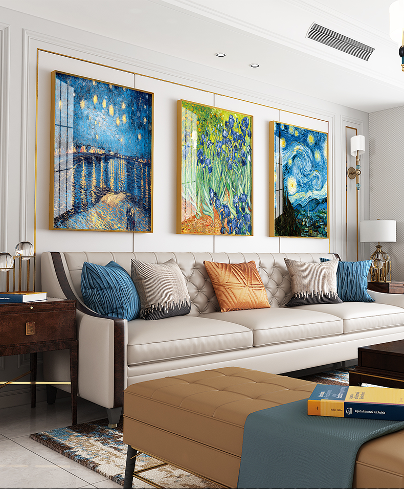 紀恒ふわふわの世界名画ゴッホリビング装飾画ソファの後ろの壁に壁壁を掛けて壁に壁を描いた絵を描いた食事台の壁に組み合わせた壁画創意芸術の穴なし壁に描く星空-B(組み合わせ)-金色の枠60*80 cm(3.5メートルぐらいのソファーに適しています)