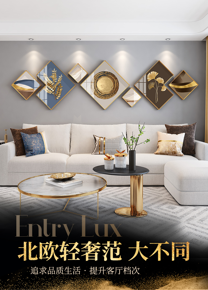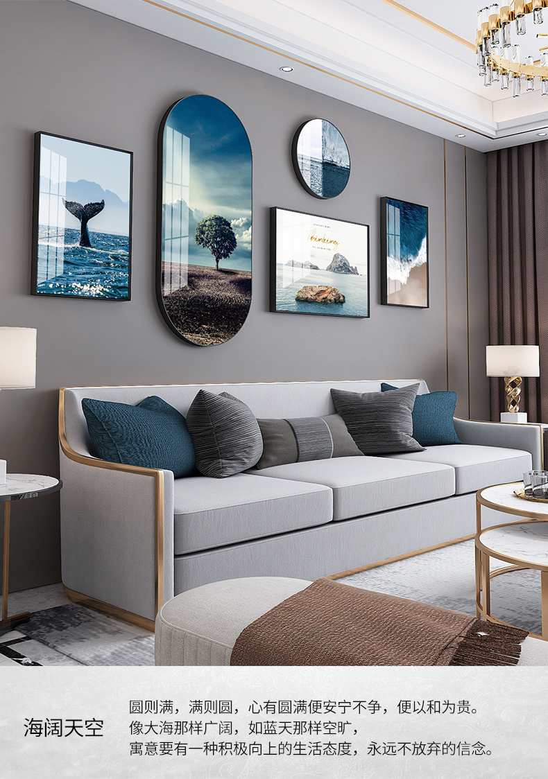 紀恒ふんわりとした贅沢な大気リビング装飾画北欧スタイルの時計セットは、ソファの背景壁画を描いています。現代簡約な室内ホールの高級な晶磁画芸術風景壁壁画の新版の円枠です。