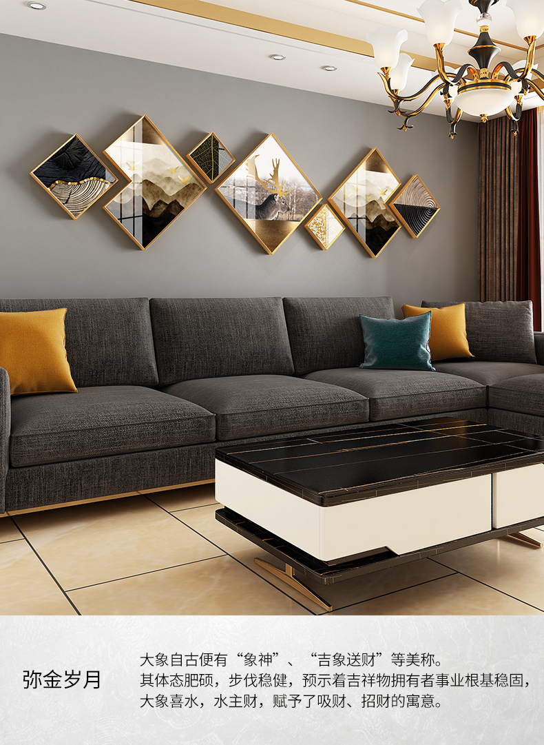 紀恒ふわふわ現代軽豪華客間壁飾りテレビの背景壁装飾家屋壁壁壁壁壁掛シンプルソファー壁壁の装飾装飾品の覆い縁側縁側招财鹿壁装飾福禄双至-金色枠(サイズ:266*70.7 cm)ラ糸細工アルミ合金フレーム【写真価格ブランド見積り】
