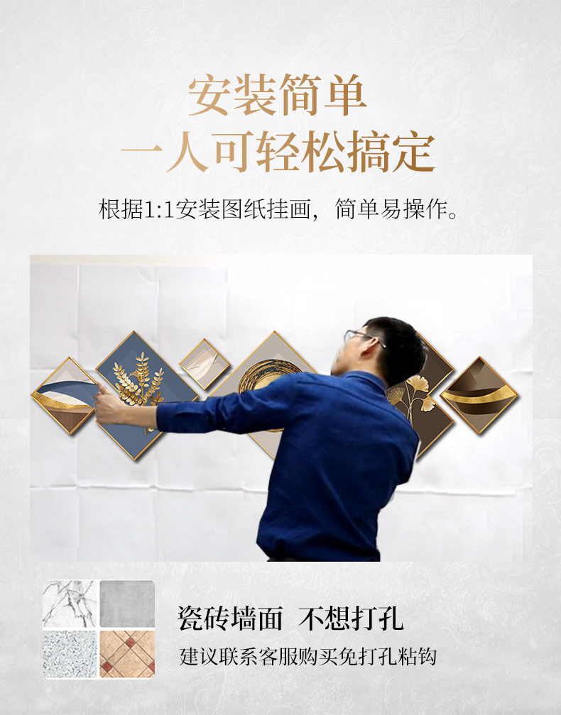 紀恒の暖かい玄関に入ると、現代のライトで豪華な装飾画が施された磁器画の大気セットの掛け軸が描かれていて、家相を招きます。鹿は廊下の抽象的な背景の壁に沿って、B-歩調が高くなります。金色の枠は壁のサイズを占めます。幅70.7 cm*高さ180 cmです。