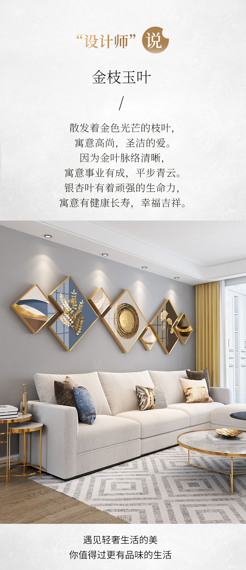 トップ 北欧現代 紀恒ふわふわ現代軽豪華客間壁飾りテレビの背景壁装飾家屋壁壁壁壁掛シンプルソファー壁壁の装飾装飾品の覆い縁側縁側招财鹿壁装飾福禄双至-金色枠(サイズ:266*70.7 cm)ラ糸工芸アルミ合金フレーム