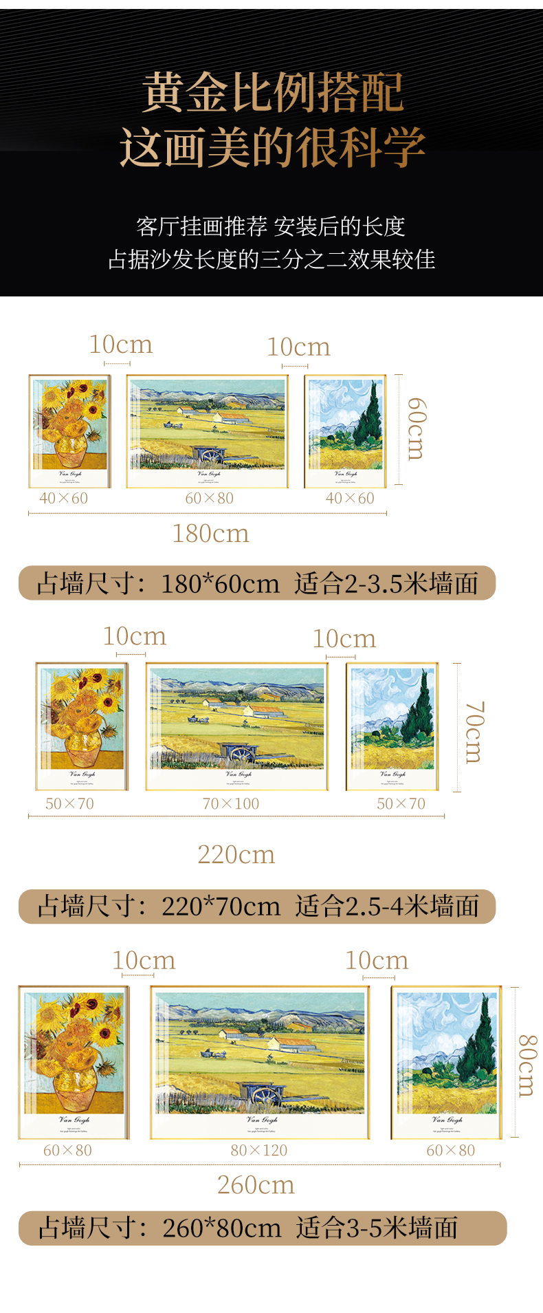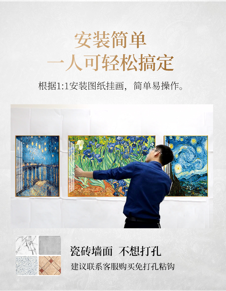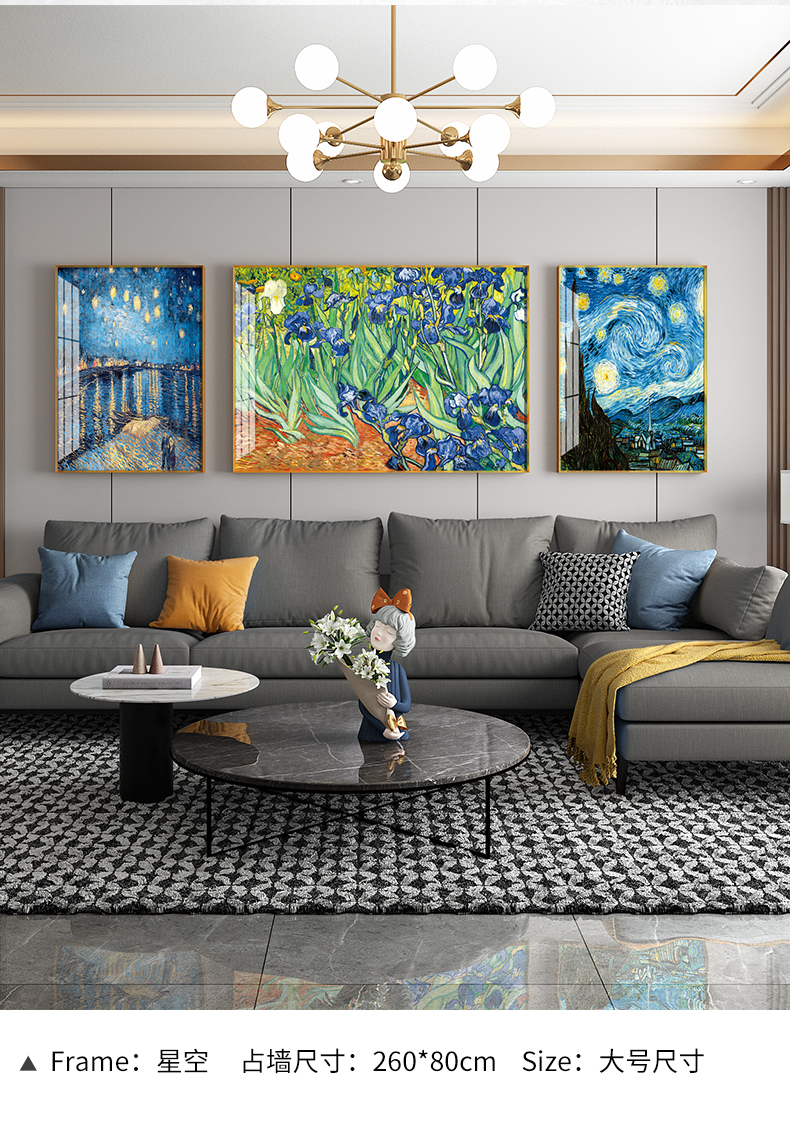 商品名称紀恒軟らかいゴッホ装飾画世界の名画家の居間のソファーの壁に、軽くて豪華な磁器画の高級な大気三連画の現代簡単な壁画の抽象芸術の壁画の豊作シリーズぐらい50*70+中70*100(3.5メートルぐらいのソファー)